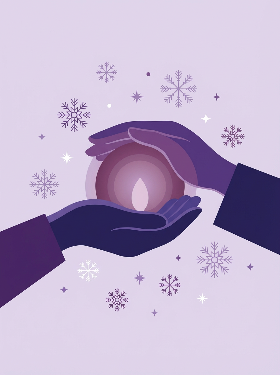 folk, Acoustic holiday folk ballad with soft fingerpicked guitar, warm piano voicings, and a small string trio that swells in the chorus, Female vocals up close and hushed, brushed percussion and soft chimes glistening at phrase ends, Slow, steady tempo; verses intimate and narrative, chorus opens gently with stacked harmonies and subtle room reverb for a cozy glow, deep, heartfelt, light, slow, emotional, warm, gentle, female vocals, acoustic, soft, faint