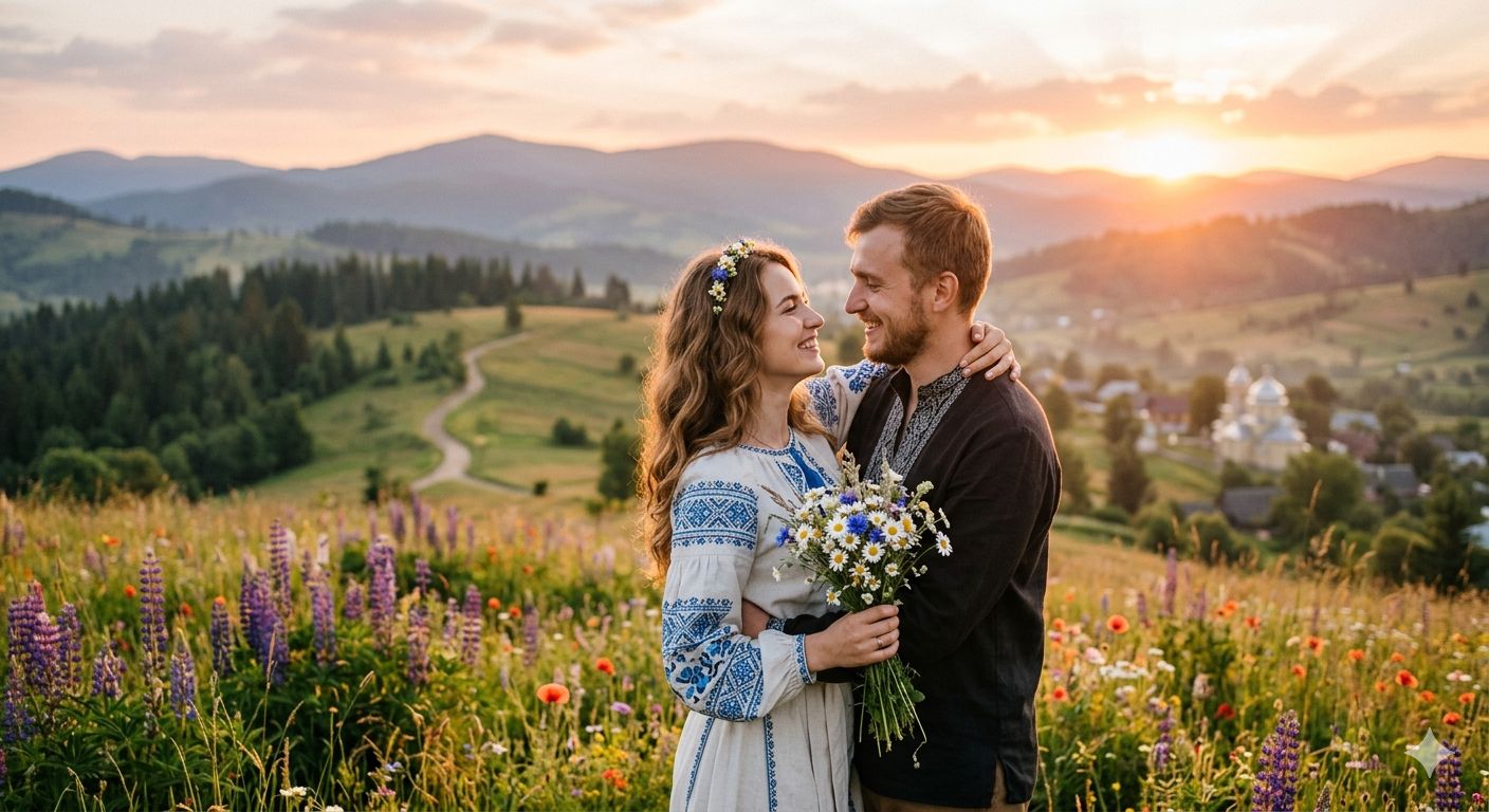 romantic Ukrainian, male vocals soft delivery, female vocals soft delivery, guitar, synth, dance, sharp transients / punchy dynamics pristine / high-fidelity / hi-res production, professional studio mix, crisp highs, tight low end, wide stereo image