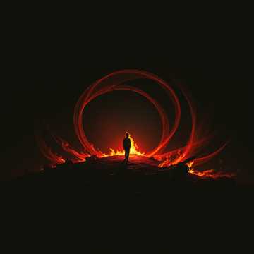 haunting solo bridge, acoustic, 70bpm, orchestral accents, gravelly male vocals, ballad, metal, orchestral, slow, acoustic to electric build, folk, slow-burning heavy metal ballad