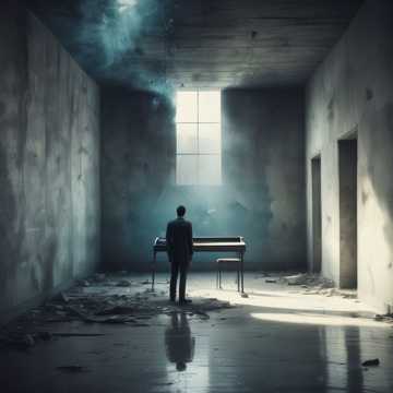 rock, Mid-2000s post-grunge ballad at 84 BPM: iconic melancholy piano riff opens alone in a roomy hall, then joined by distant reverb guitars and low bass swells, Verses stay sparse—piano, light toms, ghostly pads—while raw male vocals sit upfront and cracked, Pre-chorus adds snare build and held guitar chords, Chorus hits with full band, wide distorted guitars, live drums, and soaring string lines; lead vocal pushed to the edge with doubled harmonies, Bridge breaks down to piano and voice, then erupts with an epic guitar wail over the final chorus, post-grunge, soaring, ballad, raw, emotional