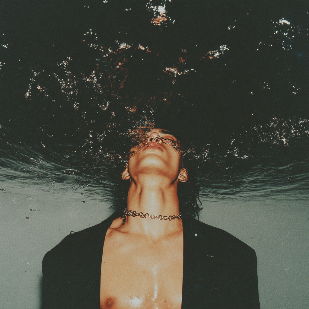 fragile moody male vocal, intimate and raw—half‑spoken, half‑sung, breathy like Keaton Henson's with Olivia Rodrigo’s emotional heft, Minimalist acoustic ballad with ambient orchestral, bowed cello undercurrents, Theme: drowning in grief, panic vs, surrender, the pull of darkness, Arrangement: Verse/Intro: Dry fingerpicked guitar, close‑mic’d breath, single low cello drone, subtle room tone, Pre‑Chorus: Add a reversed piano swell, cello grows, vocal barely above a whisper, Chorus: Soft, dampened piano chords; full low‑string swell; distant reverb tails; vocal lifts yet remains fragile, Bridge: Introduce a heartbeat kick (low tom), detuned strings bending downward, voice cracks on key words, Final Collapse: After last line, cut all instruments; leave 5 seconds of silence—abrupt, unresolved, Emotion & Performance: Embrace imperfections—uneven finger‑picking, trailing phrases, raw vulnerability, female, female vocals, duet
