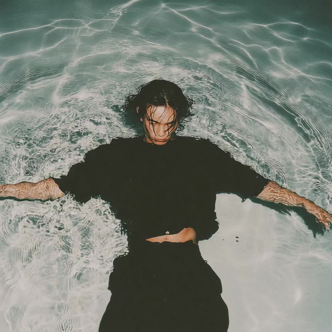Minimalist acoustic ballad with ambient orchestral, bowed cello undercurrents, fragile moody male vocal, intimate and raw—half‑spoken, half‑sung, breathy like Keaton Henson's with Olivia Rodrigo’s emotional heft, Theme: drowning in grief, panic vs, surrender, the pull of darkness, Arrangement: