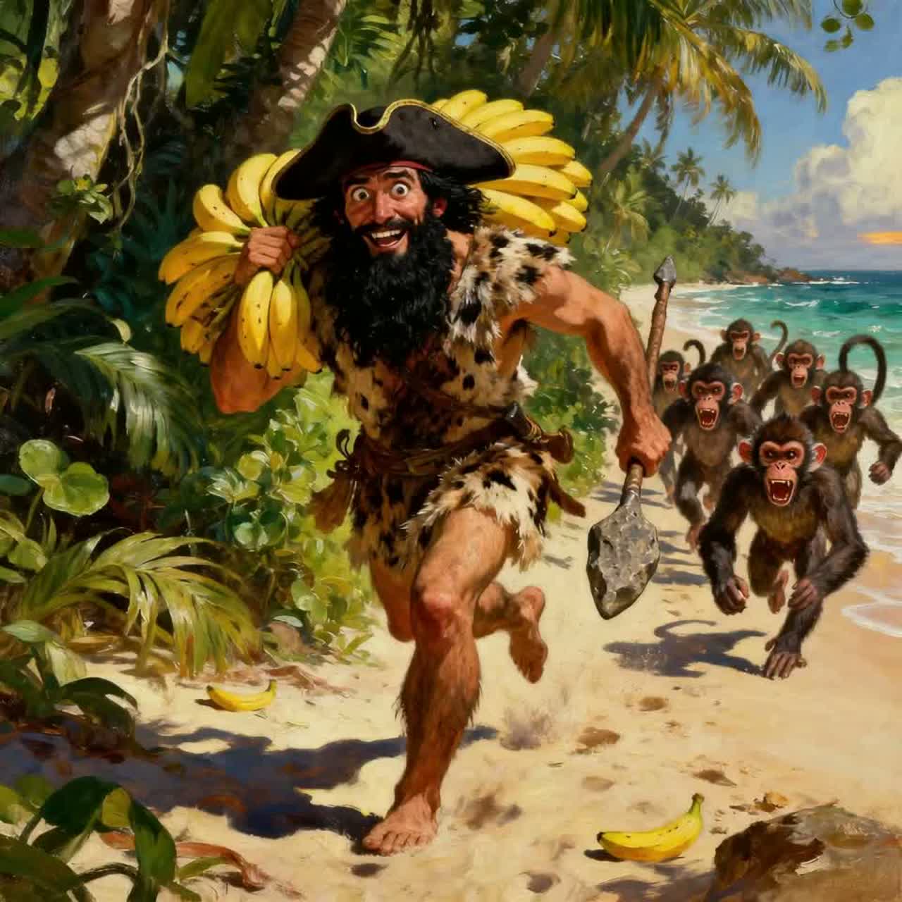 pirate shanty, hurdy gurdy, bongo, Bongo drums, Rastafarian vocals, Rasta accent vocals, upbeat background vocals, upbeat, comedy