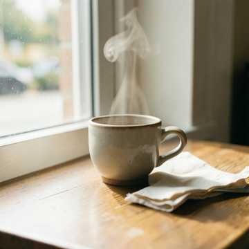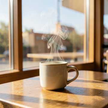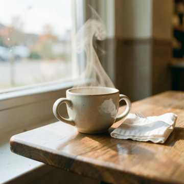 Instruments: Soft acoustic guitar with gentle picking, warm piano layers, minimal kick-snare groove, subtle bass, light ambient texture, Clean, calm, and intimate arrangement, Vocal Style: Gentle male voice, light texture, clean articulation, warm and slightly emotional tone, Soft delivery with relaxed phrasing, Mood: Calm café atmosphere in the afternoon, Peaceful, slightly reflective, and comfortable, Not sad, just quietly content and relaxed