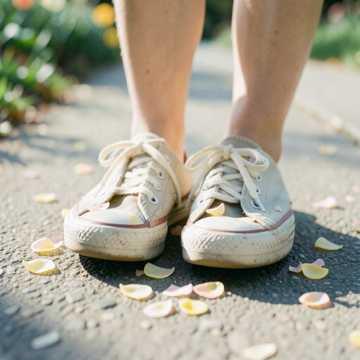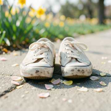 Instruments: Bright acoustic guitar with rhythmic strumming, soft groovy kick-snare pattern, warm bass, light handclaps, subtle whistle hook for catchiness, Slightly fuller arrangement than previous tracks but still clean, Vocal Style: Gentle male voice, light texture, clean articulation, warm and slightly more upbeat delivery, Natural bounce in phrasing, friendly and relaxed tone, Mood: Cheerful spring walk with a noticeable groove, Light, catchy, and uplifting without being loud, Feels like humming along while walking under warm sunlight