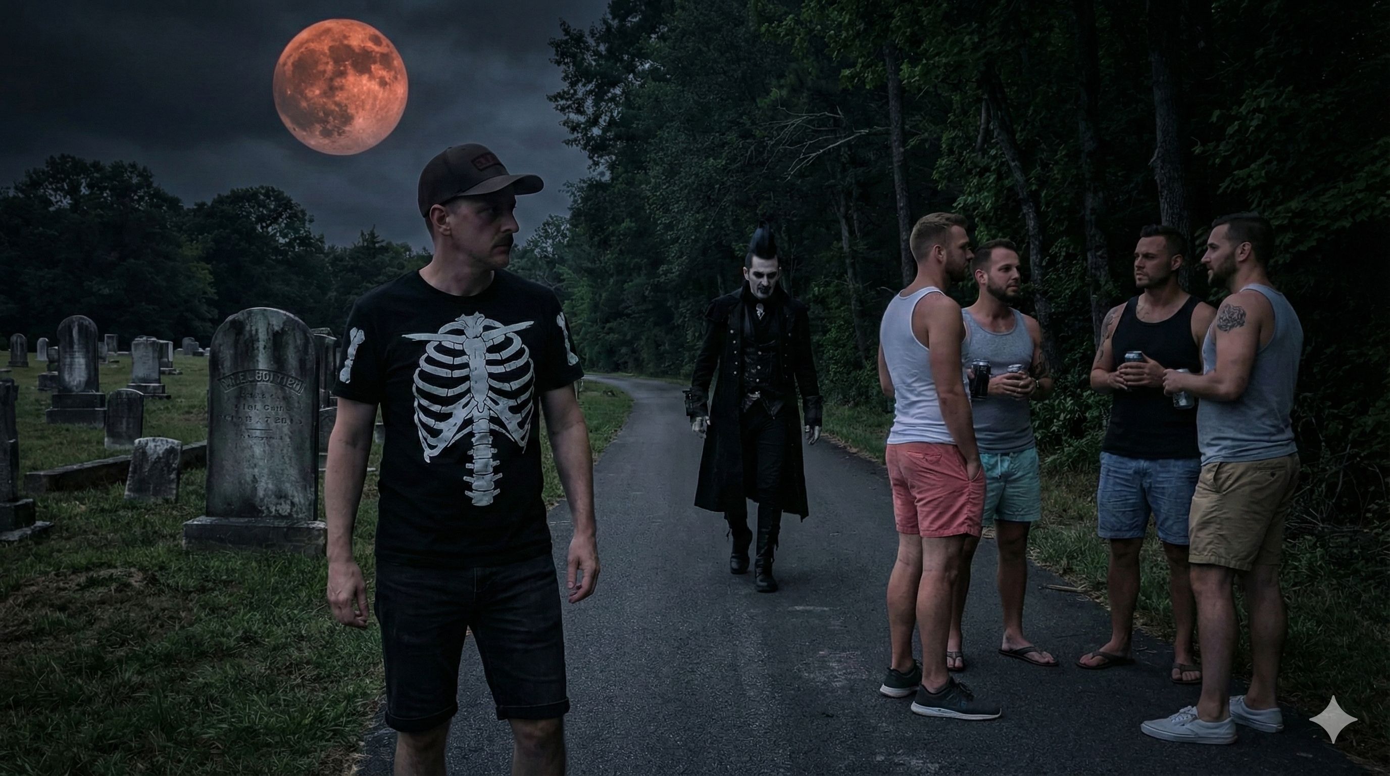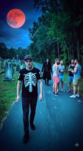 accent du Québec, sexy male vocals, sexy lady backing vocals, groovy, bass, disco, pop, funk, synth, electrofark wave, 80" hommage, lots of sound effectsof horror, dark post punk, catchy dancable, diso goth pop, macabre, clap clap clap to the beat all along