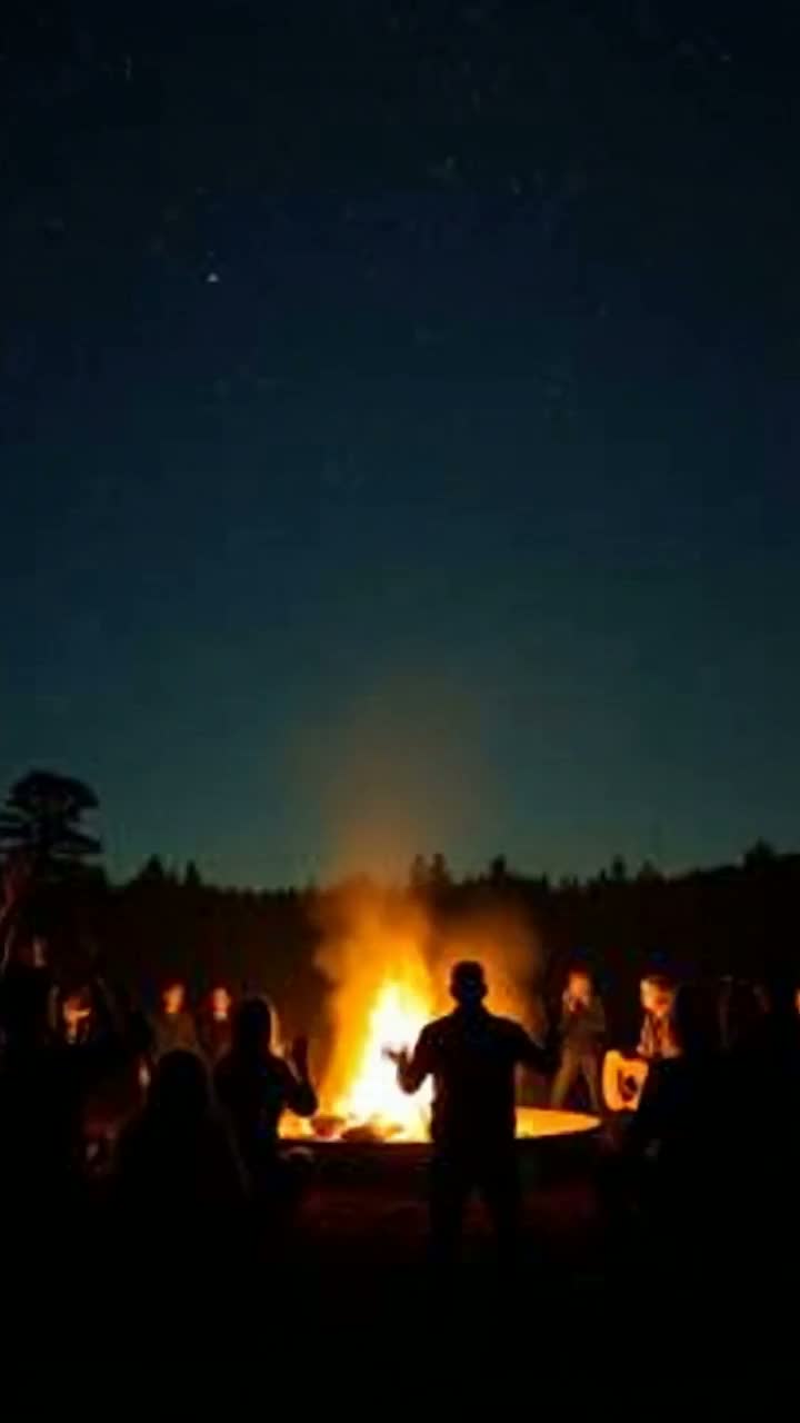 Campfire rebel folk anthem, Acoustic guitars, stomps, claps, whistling and finger snaps, raw and organic sound as if sung outdoors at night by a campfire, Male lead vocal, warm and slightly rough, with scout-style choir singing along in unison, crowd shouts and call-and-response, Mood: rebellious, hopeful, unifying, hymn-like with a rustic edge