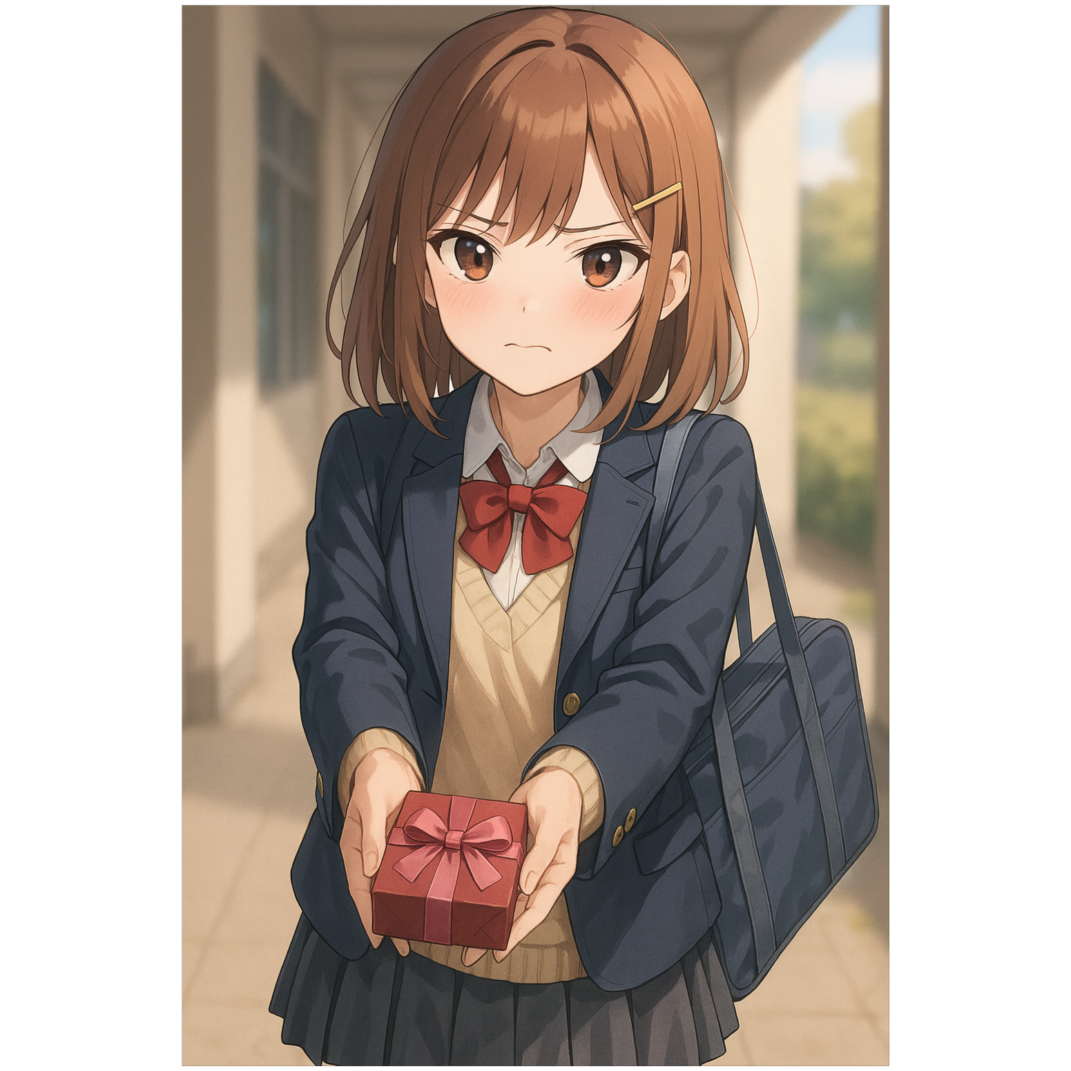 A bright but sharp-edged J-pop track with strong tsundere personality, pairing bouncy electro-pop beats with crisp trap-influenced drums, The intro hits with minimal synth pulses and a confident spoken line, quickly dropping into verses with tight 808 kicks, snappy snares, and staccato synth plucks, Pre-choruses build with airy pad swells and layered claps, exploding into choruses that shimmer with bright synth leads and stacked vocal harmonies, The vocal delivery is playful but pointed, with an assertive tone that occasionally softens in quieter moments, Processing features light saturation for bite, tight reverb for immediacy, and a few whispered asides left raw for intimacy, The final chorus lifts with a richer arrangement, adding layered ad-libs and an emotional but still teasing delivery, ‑metal guitar riffs, ‑aggressive rock drums, ‑punk energy, ‑country twang, ‑blues shuffle, ‑jazz swing, ‑orchestral bombast, ‑distorted screaming vocals, ‑glitch-heavy EDM drops