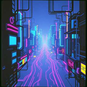 A cyberpunk fusion track starts with meditative synth pads in deep purples and teals, punctuated by metallic percussion and controlled pulses, Ethereal choral samples float behind processed flutes, while glitchy electronic textures and digital arpeggios swirl, A sparse, ritualistic beat adds momentum; shimmering bell tones and vocoder-wrapped chants accent transitions, culminating in a transcendent, tech-mythological soundscape