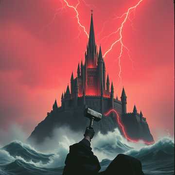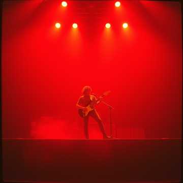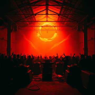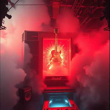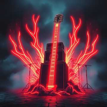 metal, Modern heavy metal instrumental, drop D guitars through cranked tube heads; tight palm-muted power riffs lock with aggressive kick and tom-heavy grooves in a Rev-inspired style, Song opens mid-tempo and stomping, shifts into a galloping pre-chorus feel, then erupts into a wide, twin-guitar chorus, Late in the track, a melodic yet flashy Synyster Gates–styled solo soars over modulated harmony changes, tapping runs, and dramatic bends, Live-room drum energy with punchy snares, articulate cymbal work, and subtle room ambience; bass glued to guitars for a thick, focused wall of tone, minimal