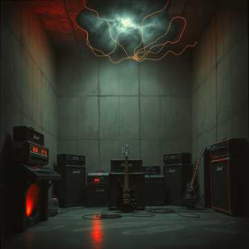 metal, Raw metal instrumental, drop-D guitars through cranked tube half-stacks, male-leaning energy but instrumental only, palm-muted riffs, galloping rhythms Song arc: punchy intro, driving verse riff, soaring half-time chorus figure, bridge breakdown, then a climactic harmonized guitar solo finale, Mix is dry, live, and aggressive, like a band tearing it up in a sweaty rehearsal room, raw, minimal, classic, fully inspired by : ''Anonymus, ni vu ni connu alblum''