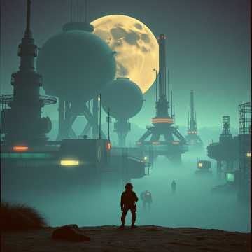slow chilling electronic layers lonely tune Dark yet chill futuristic sci-fi instrumental soundtrack for a film about spaceship transcending through the horizone, engeneering in space, electronic Krautrock, After humanity’s disappearance, intelligent humanoid robots explore a decaying megacity shaped by Afro-futuristic Lagos energy, Atmosphere of urban ruin, neon lights and slow technological evolution, Combine minimalist retro-futuristic electronic tones, precise mechanical rhythms, analog synths, vocoder-like textures and motoric beats with deep electronic layers, breakbeats and trip-hop grooves, Integrate tribal percussion inspired by Igbo and Zulu musical elements, subtle polyrhythms and ritual drum patterns, Cinematic, melancholic, hypnotic, futuristic, chill, purely instrumental, perfect for a sci-fi film score
