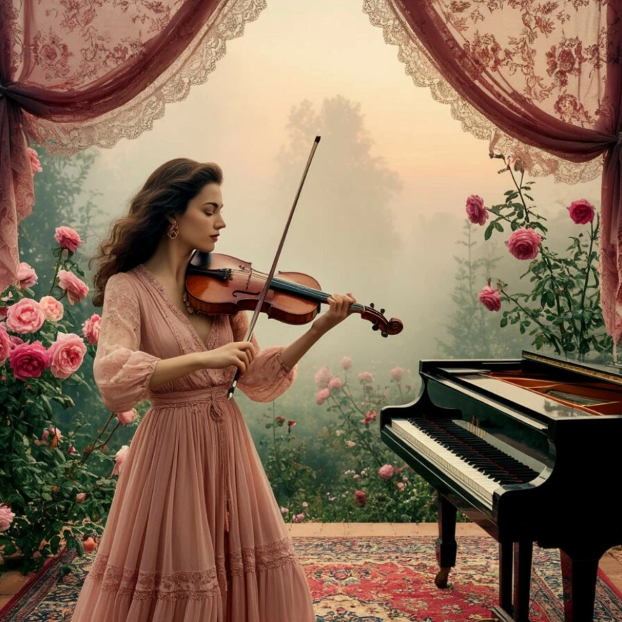 Instrumental orchestra soundtrack, slow lounge, violin solo, piano accompanied, 8D Audio poliphonia