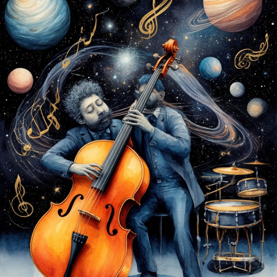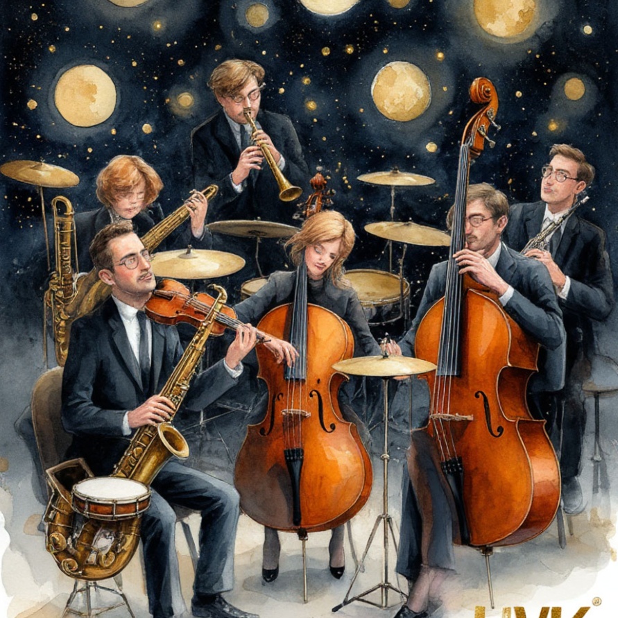 Orchestra instrumental, space, mixt brazilian samba, bossa jazz, latin jazz, loungewith elements of world music, Evening jazz + pop, melancholic, acoustic, synthpop, 8D Audio
