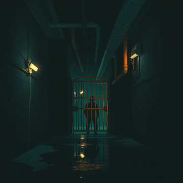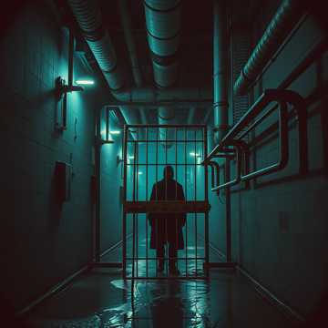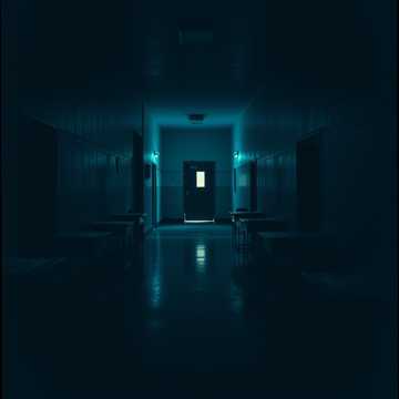 Industrial Metal, Aggrotech, Dark Electro, heavy distorted bass, metallic percussion, aggressive guttural male vocals, psychological horror, frantic, disorienting, mournful, desperate, distorted echoes, haunting synth pads, a sudden shift from chaos to sorrow, glitching sound effects