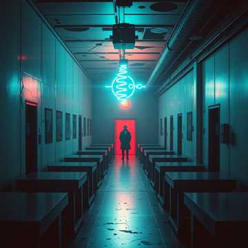 Industrial Metal, Aggrotech, Dark Electro, heavy distorted bass, metallic percussion, aggressive gritty male vocals, sterile, cold, clinical atmosphere, melancholic synth pads, rhythmic beeping, bubbling liquid sounds, surgical clangs, a sense of fading hope, experimental, scientific horror, chilling and methodical