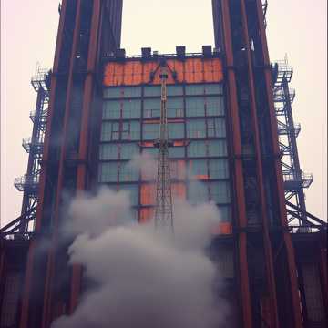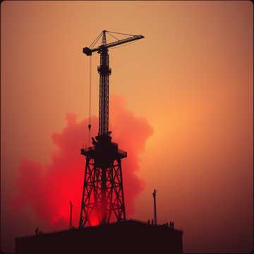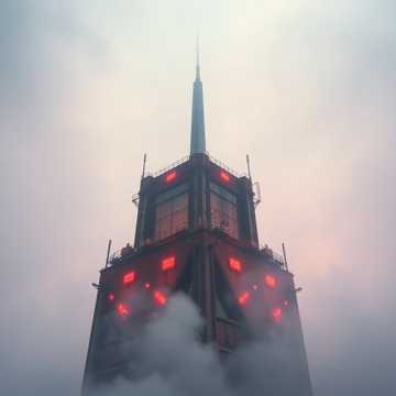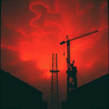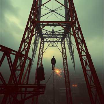 Industrial Metal, Aggrotech, Dark Electro, heavy distorted bass, metallic percussion, aggressive gritty male vocals, intense build-up, vertigo-inducing, high-altitude sounds, wind howling, static radio noise, frantic, desperate, soaring synth leads, metallic clanking, sense of exposure