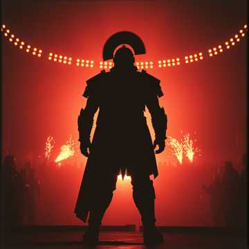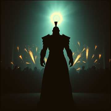 Industrial Metal, Aggrotech, Dark Electro, heavy distorted bass, metallic percussion, aggressive guttural male vocals, brutal, relentless, pounding rhythm, arena battle, overwhelming force, guttural roars, distorted crowd noise, synth sirens