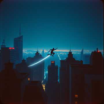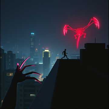 Industrial Metal, Aggrotech, Dark Electro, heavy distorted bass, metallic percussion, aggressive gritty male vocals, frantic, high-energy, relentless, fast tempo, urban chase, dizzying synth arpeggios, whooshing sounds, hard stops, adrenaline pumping