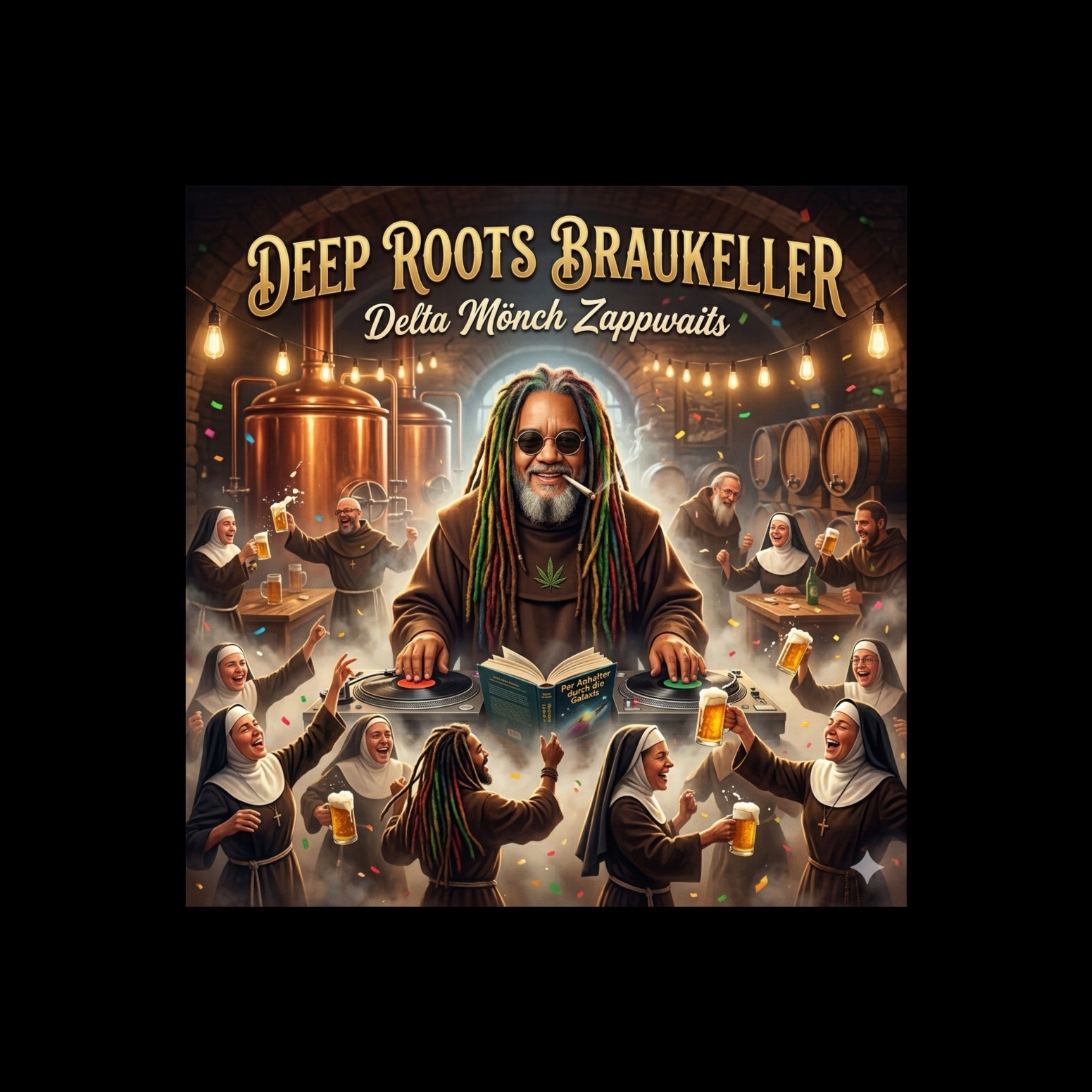 Bouncy jazz drums with pronounced Afrobeat hi-hats drive the groove alongside a playful, warm funk bassline, Electric Rhodes chords twist in jazzy, off-kilter voicings, coloring the verses, Baritone and tenor saxes spar in lively call-and-response bursts, Afrobeat percussion—shakers, congas, talking drum—interweaves densely, heightening the organized chaos, Subtle synth accents add a surreal, mischievous layer, Expressive male sprechgesang alternates with hyper-melodic, exaggerated hooks, riding