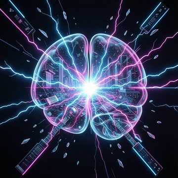 rock, High-octane EDM-rock hybrid with Vocaloid lead; frantic sidechained synths over distorted guitars, taiko-style toms, and glitchy fills, Vertical bamboo flute, shamisen, and Japanese harp cut sharp, melodic lines between phrases, Verses ride a tense, clipped groove; choruses explode into bright, soaring hooks with doubled vocals and octave harmonies, then drop into a rave-ready final hit, edm, vocaloid, harp