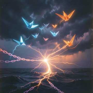 rock, High-energy EDM-dubstep hybrid with Vocaloid lead, layered harmonies, and a “beautiful chaos” topline, Half-time, glitchy drops with crazy syncopation; verses float on airy pads and delicate plucks evoking bamboo flute, shamisen, and koto textures, piano adding emotional lift, Choruses explode with bright supersaws, pitch-bent leads, and chopped vocal riffs, building to a euphoric final refrain, vocaloid, dubstep, edm, harp