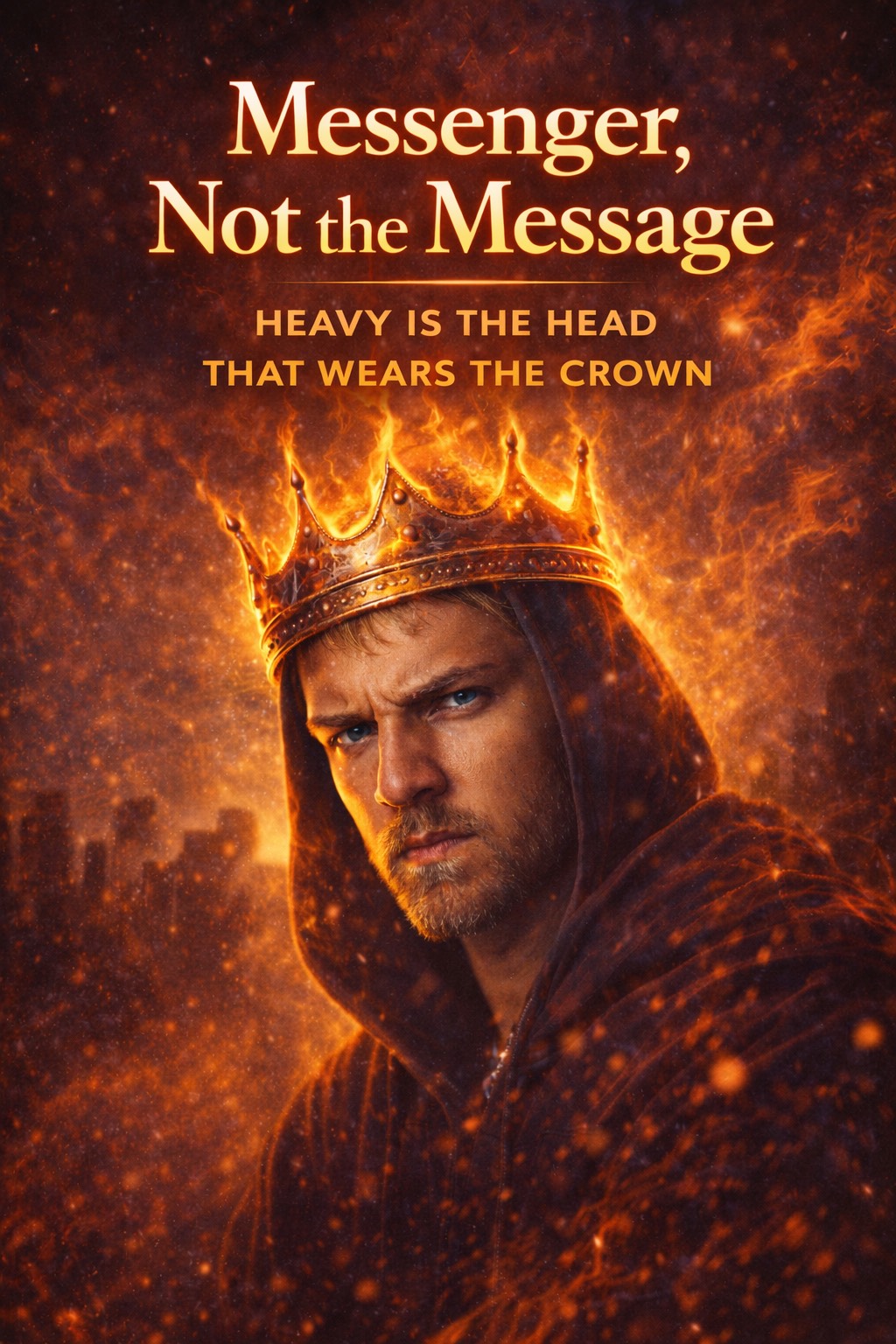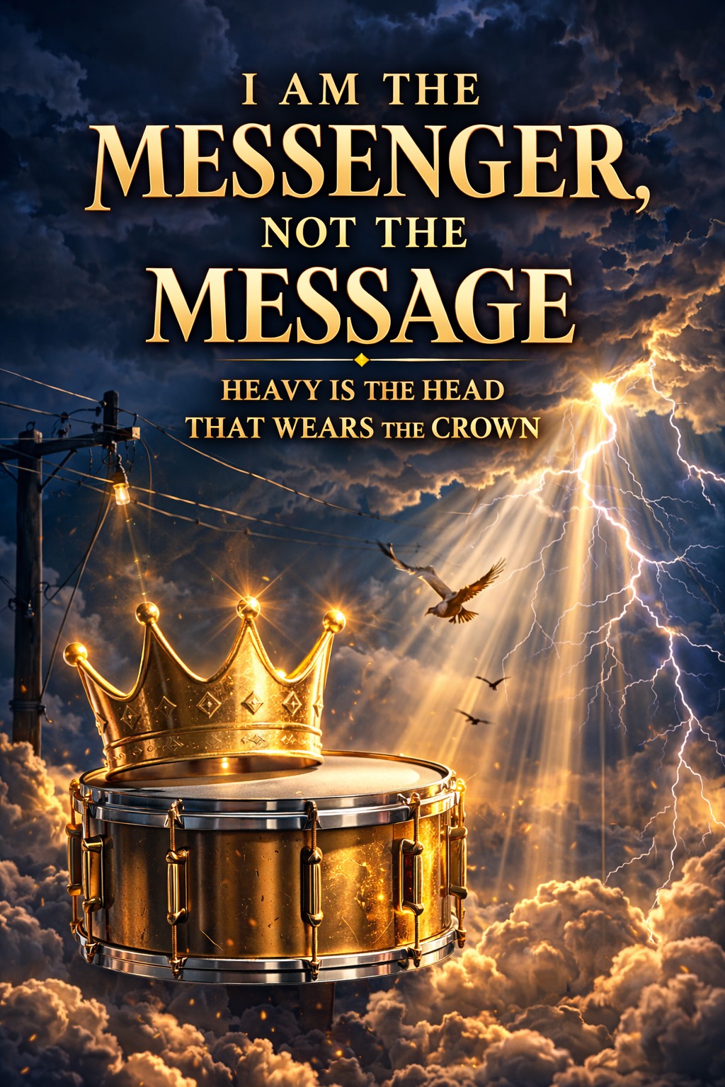 British male voice: Cinematic conscious anthem, spoken-word meets melodic chorus, spiritual hip-hop with atmospheric synths, deep pulse, emotional male vocal, reflective and powerful, slow build into an uplifting chorus, themes of burden, truth, service, humility, leadership, and carrying a message bigger than the self