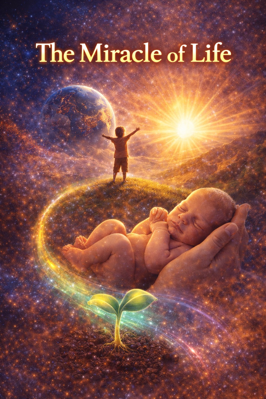 British male / female voice, Cinematic inspirational pop ballad, soulful male vocal, warm piano intro, ambient pads, acoustic guitar, swelling orchestral strings, slow build drums, emotional and uplifting, spiritual but universal, reflective verses and powerful anthemic chorus, about the miracle of life and human unity
