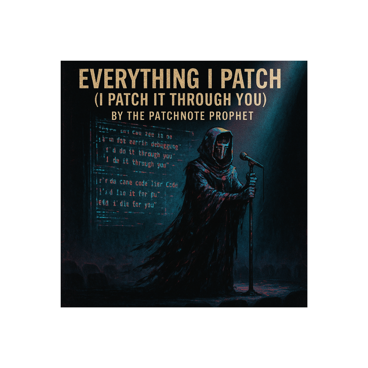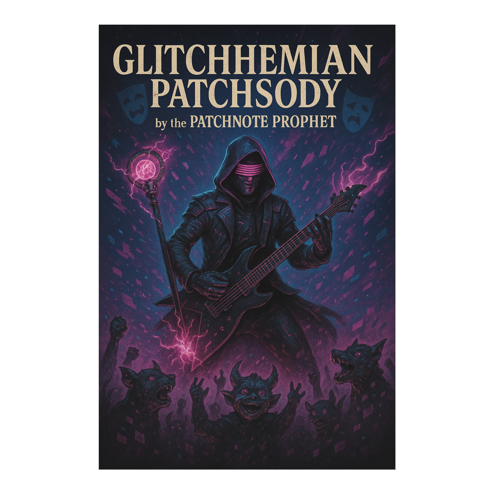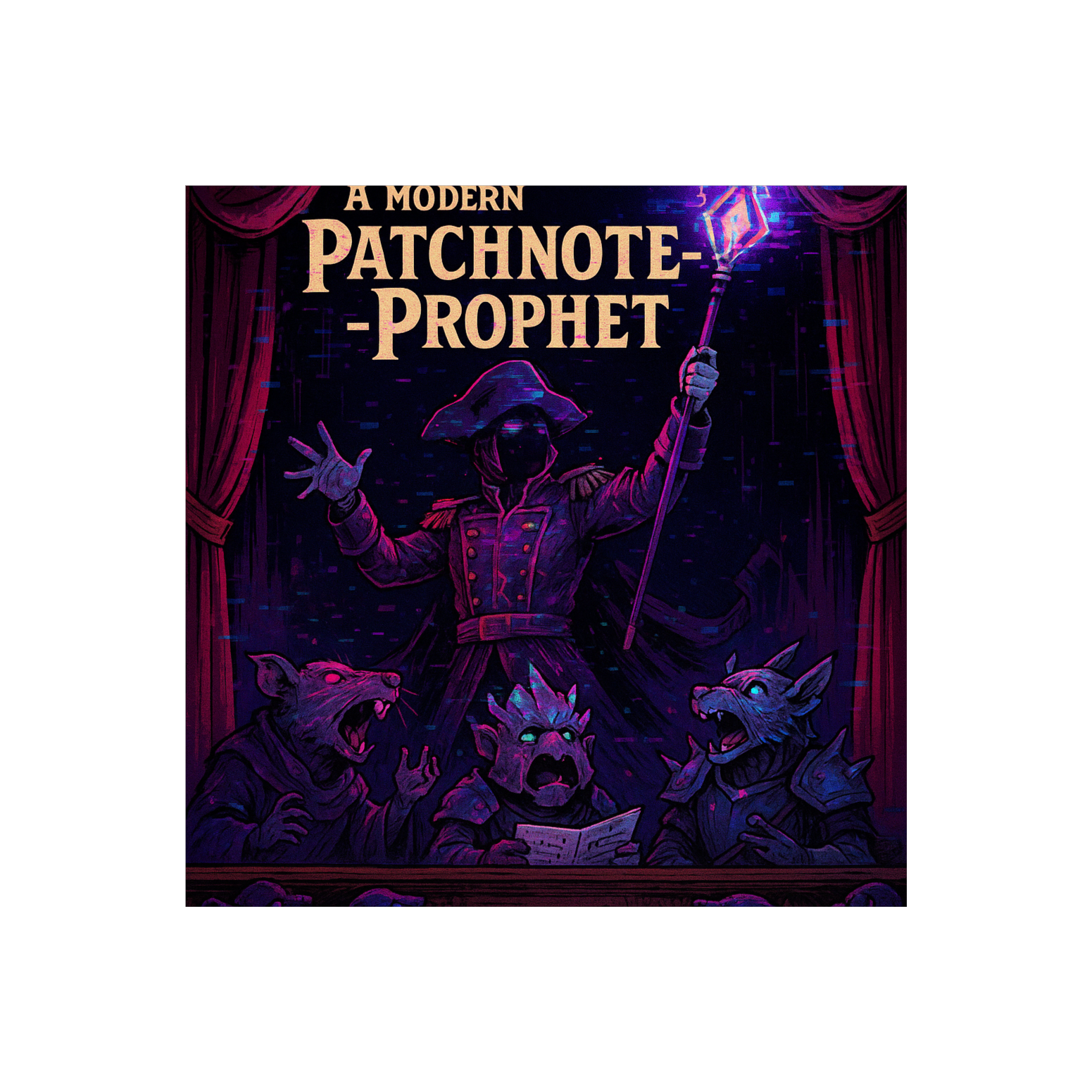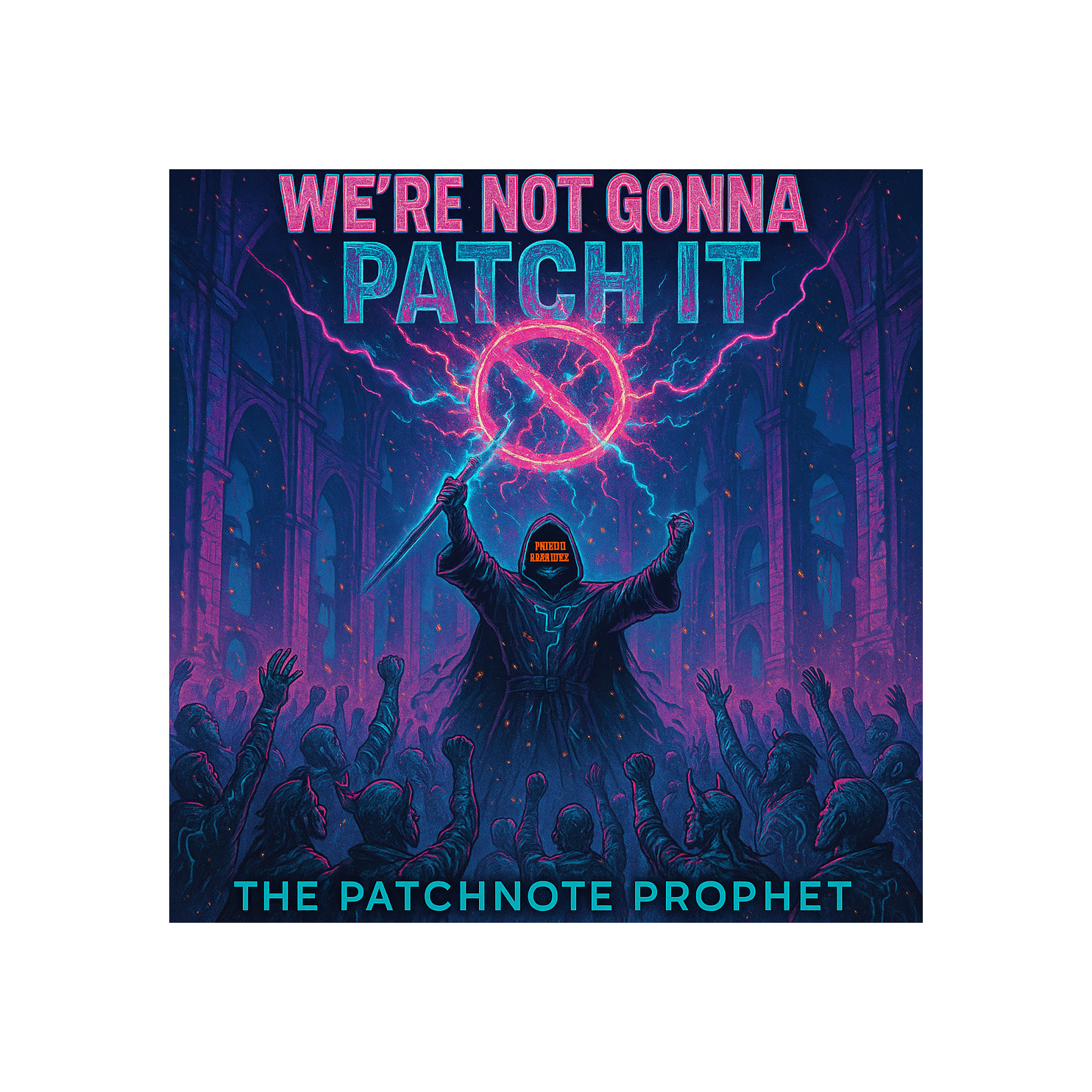 This darksynth orchestra opens with eerie strings and distant choir pads layered over industrial percussion, Glitchcore beats cut through thick synthwave bass, while distorted guitar riffs grind beneath orchestral stabs, Grand crescendos create anthemic dread, infusing gamepunk energy