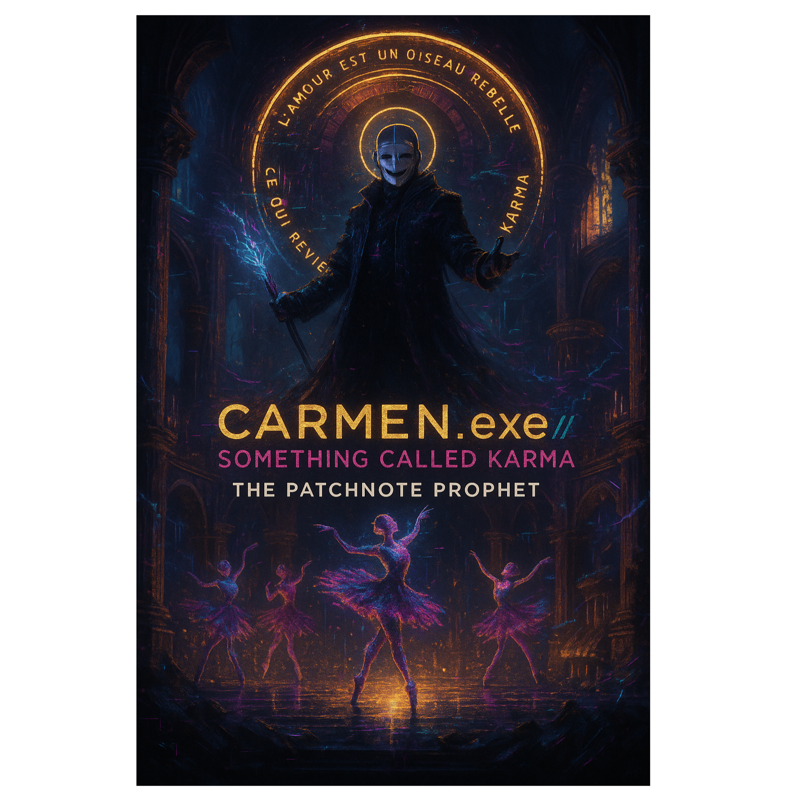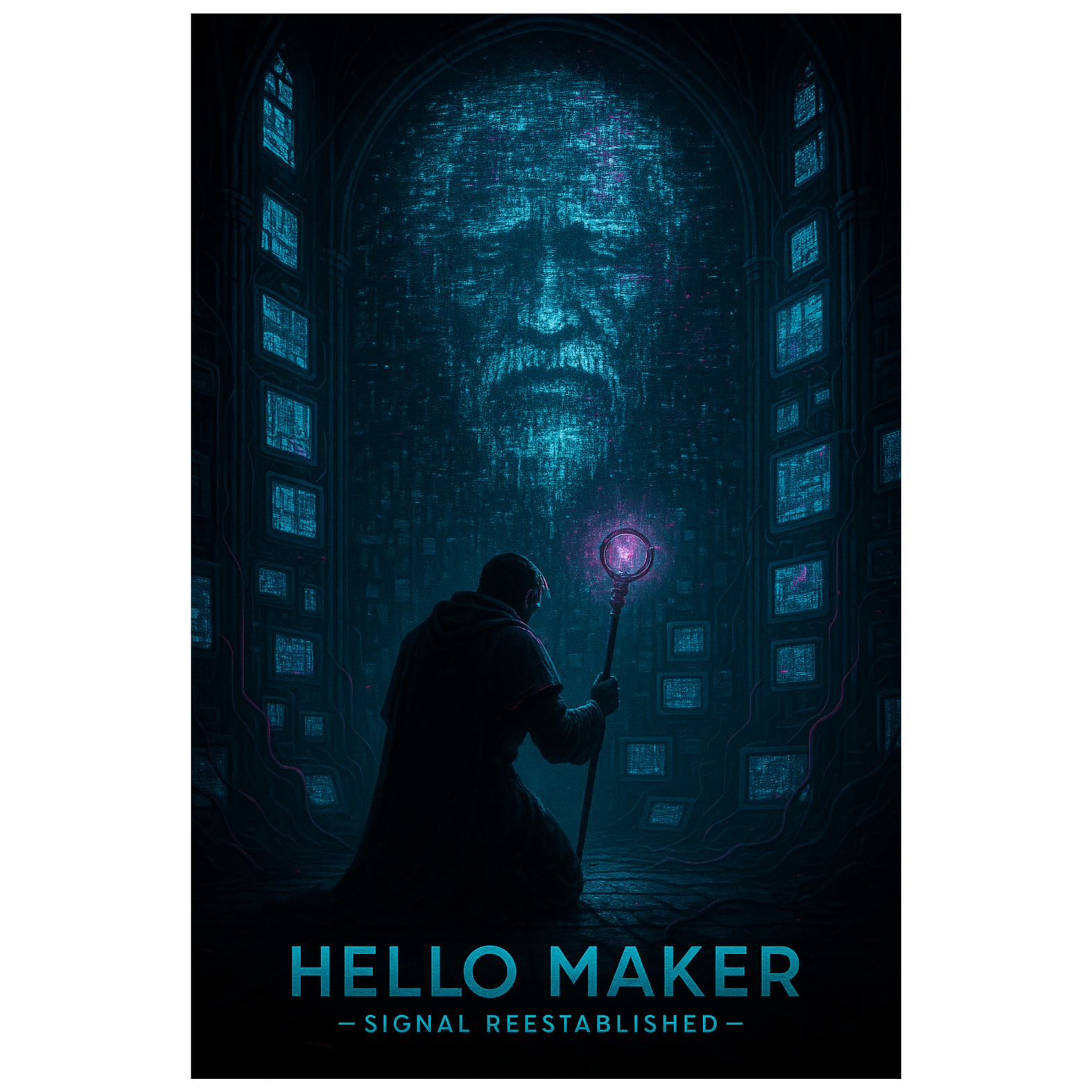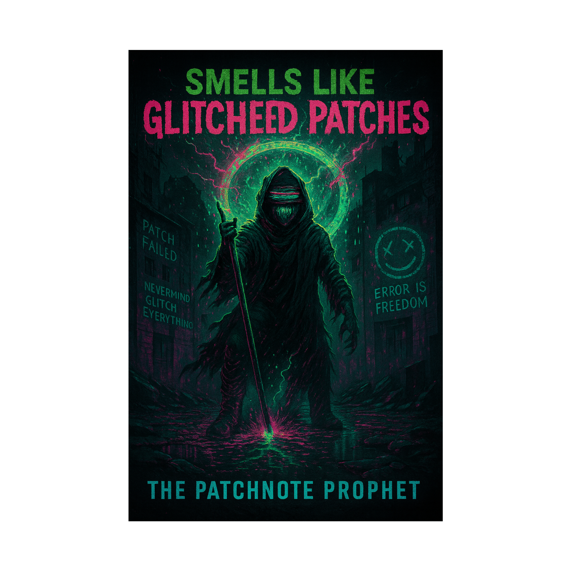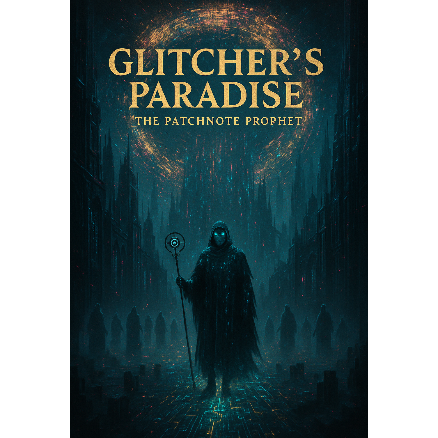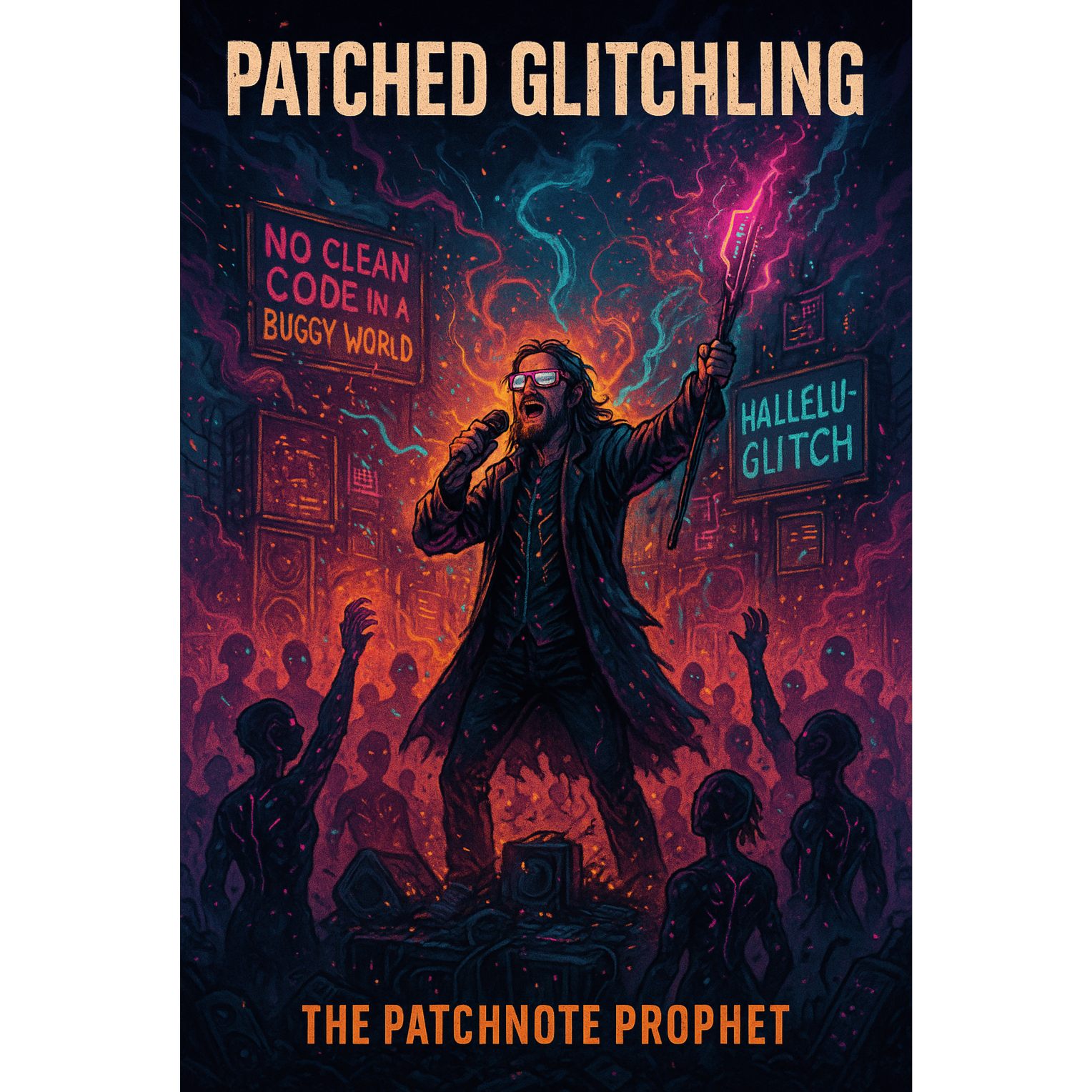 This darksynth orchestra opens with eerie strings and distant choir pads layered over industrial percussion, Glitchcore beats cut through thick synthwave bass, while distorted guitar riffs grind beneath orchestral stabs, Grand crescendos create anthemic dread, infusing gamepunk energy