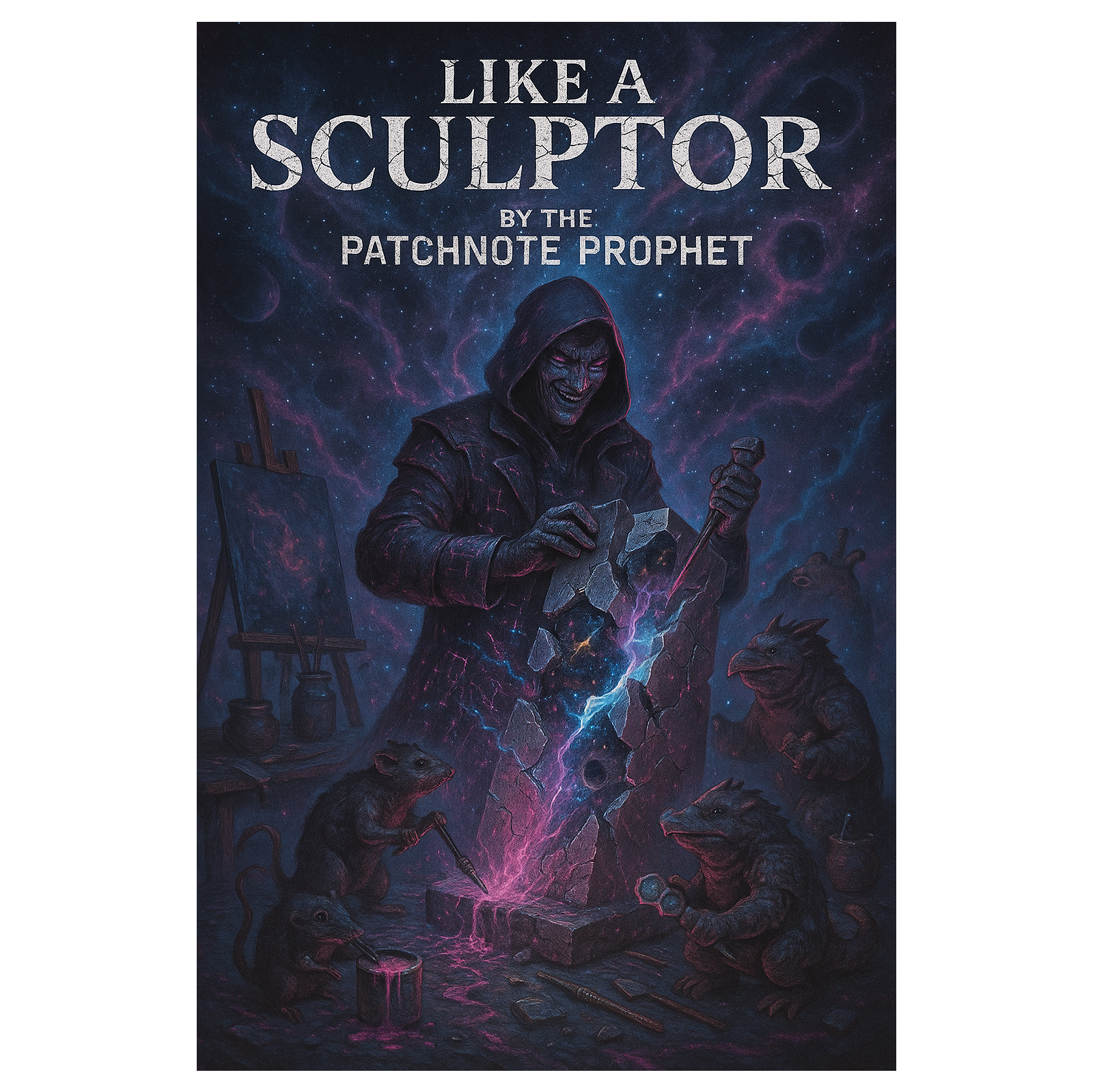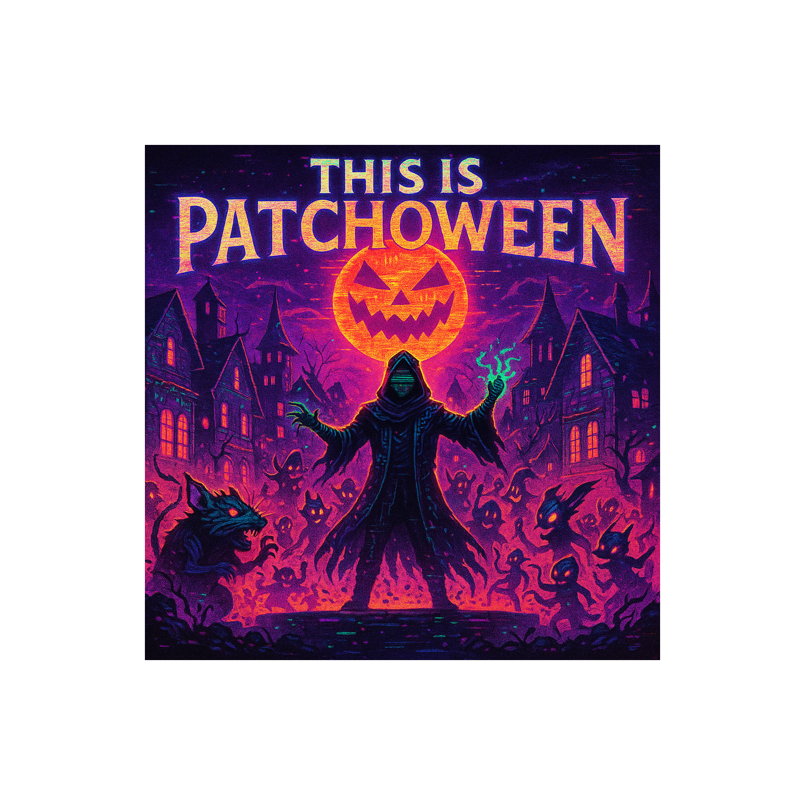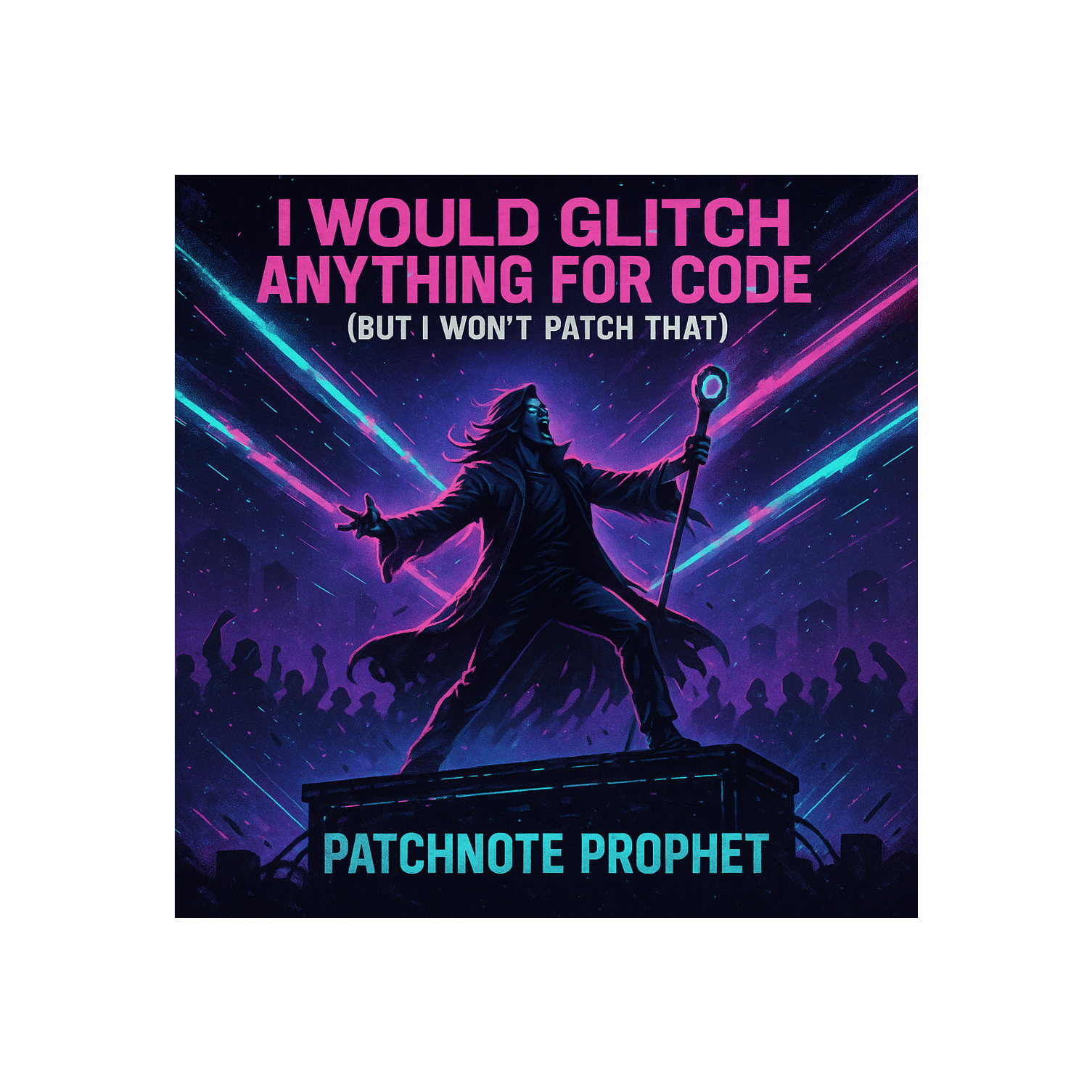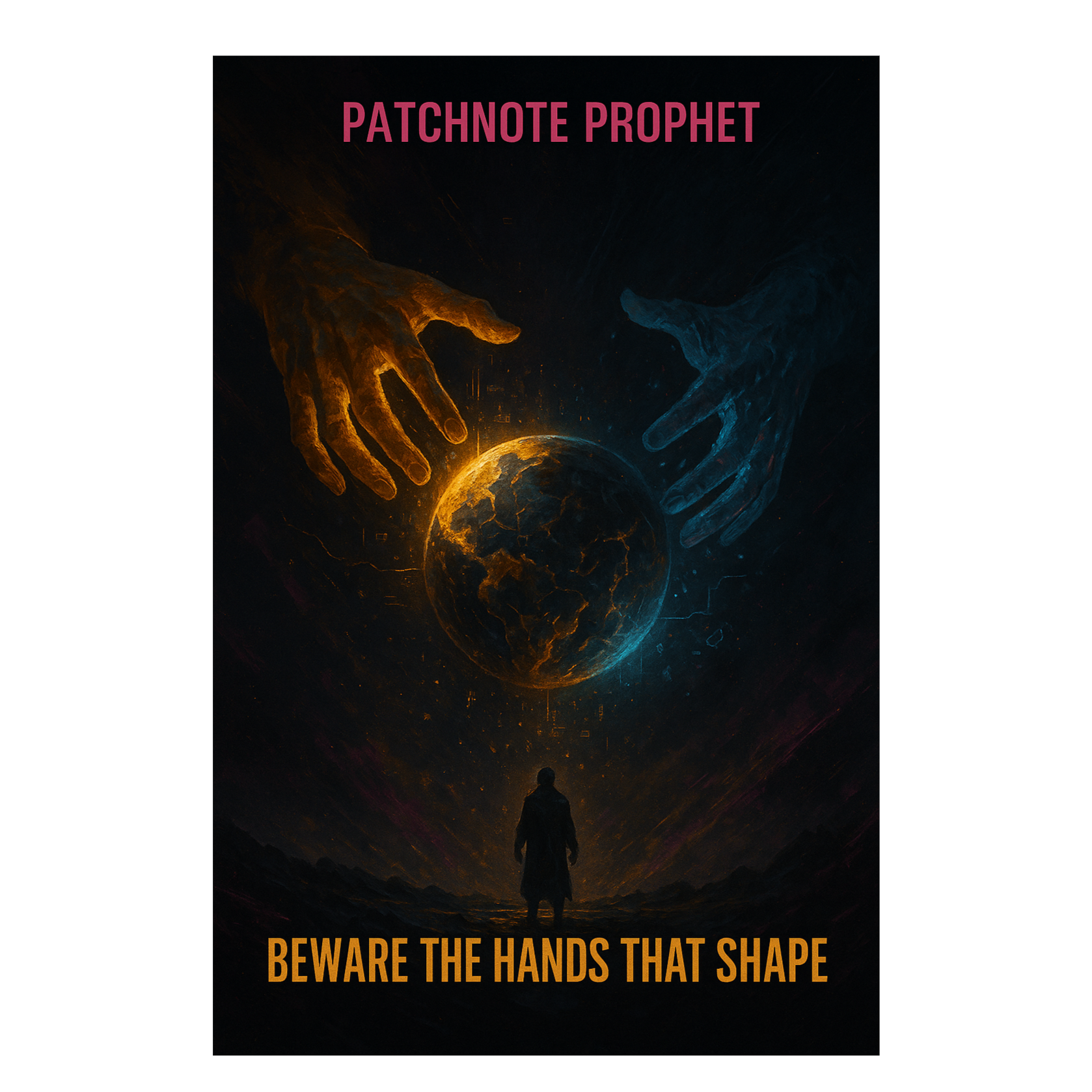 This darksynth orchestra opens with eerie strings and distant choir pads layered over industrial percussion, Glitchcore beats cut through thick synthwave bass, while distorted guitar riffs grind beneath orchestral stabs, Grand crescendos create anthemic dread, infusing gamepunk energy