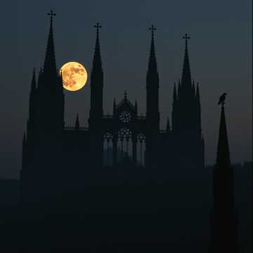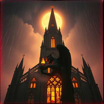dark fantasy, epic cinematic, deep bass strings, orchestral, and haunting gregorian chanting in the background, orchestral; melancholic atmosphere with prominent church organ