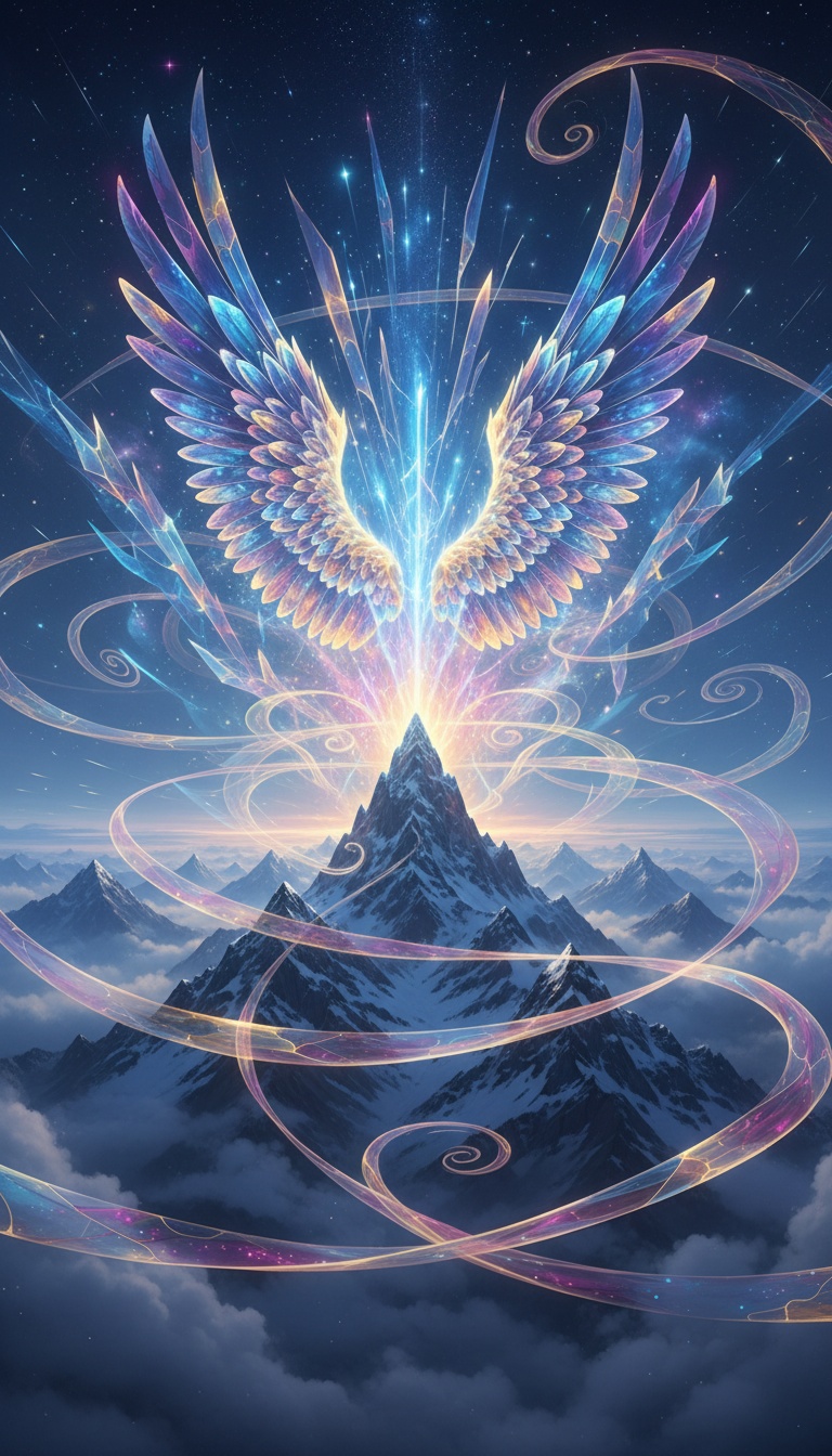 fantasy cinematic, choir, epic orchestral, soaring crescendos with strings, orchestral, and harp; layered with ethereal textures and a powerful build to a triumphant climax, soaring
