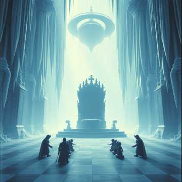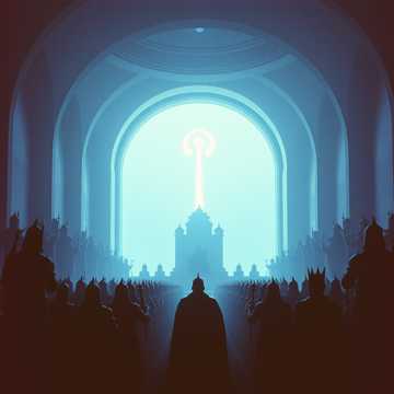 An epic orchestral piece driven by powerful strings and bold brass, layered with haunting choir harmonies, Percussive timpani and deep cellos create dramatic tension, while woodwinds add intrigue, Dynamic shifts and soaring melodies evoke grandeur and a sense of ancient power