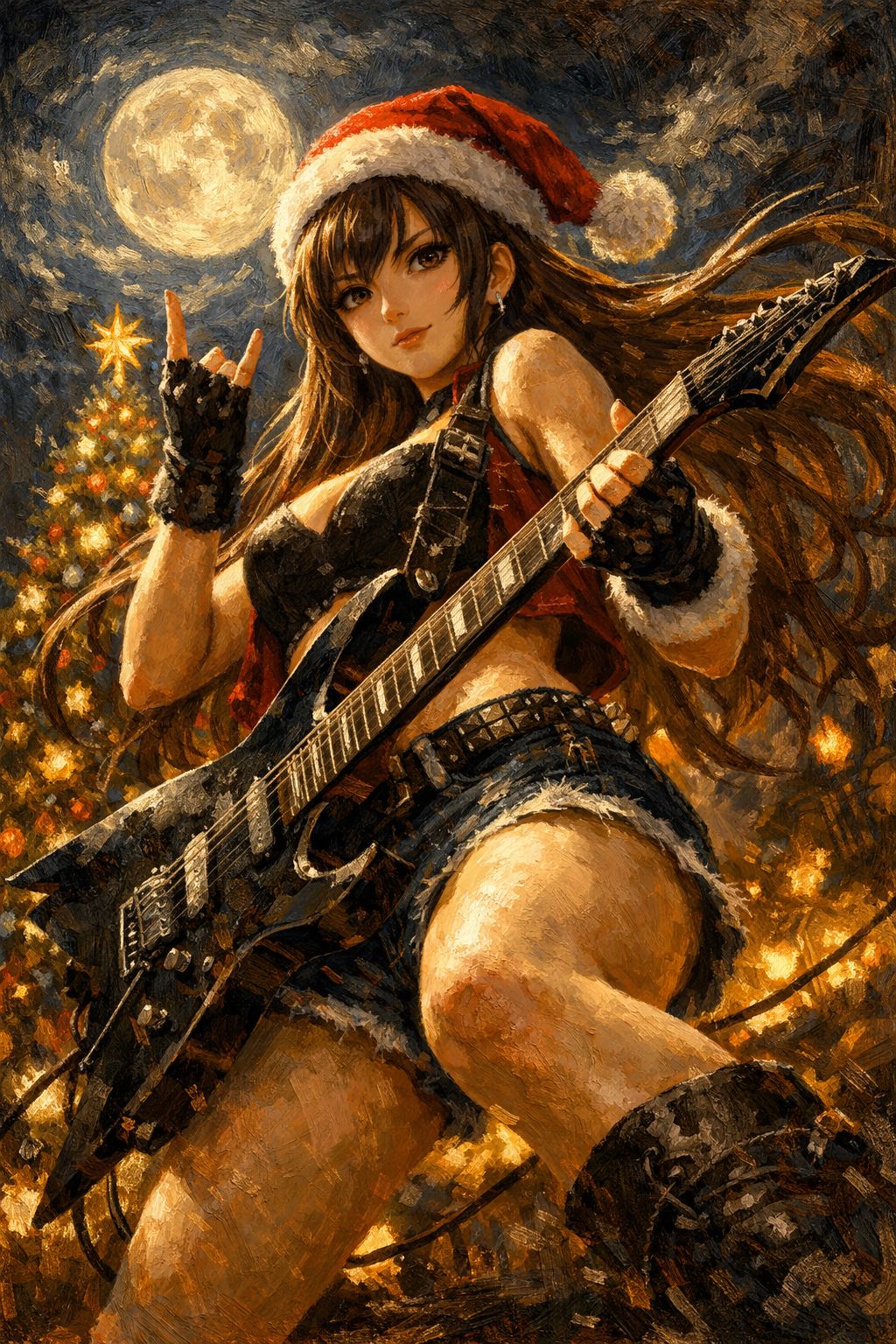 Very Fast-tempo Hard Rock, 1980s Sleaze Metal, Aggressive Speed Rock, High-pitched raspy female vocals, Driving electric guitar riffs, Double time drums, High energy, Shredding guitar solo, Intense