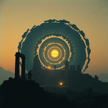 mystical, sitar-led, with an air of finality and swirling reverb textures, reflective