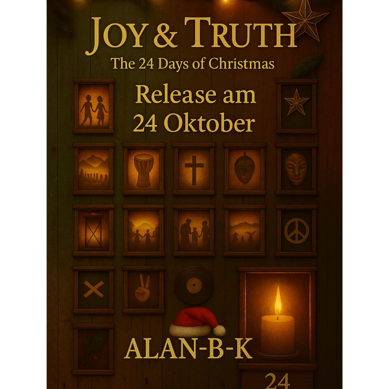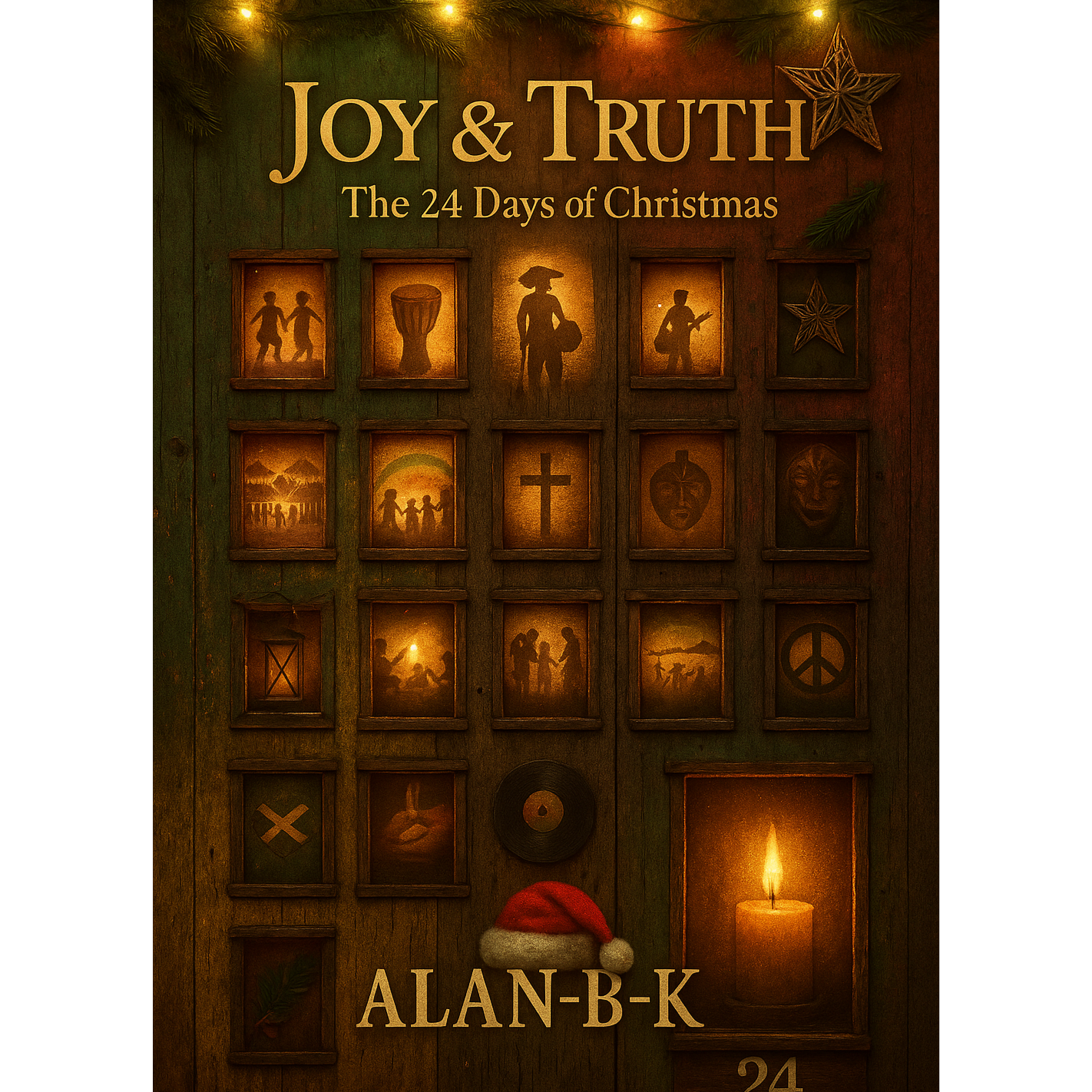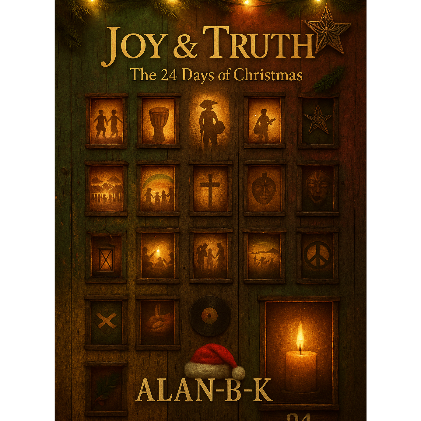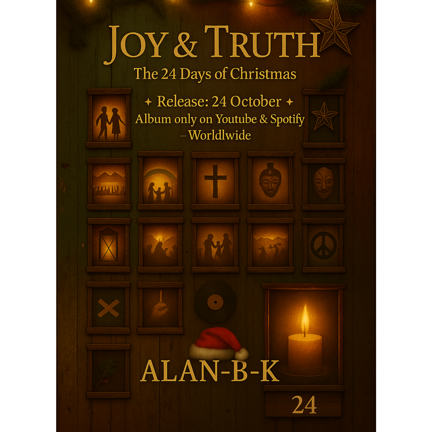Midnight everywhere at once; voices from 24 lands rise over oceans and cities, A global roots-reggae fusion around 92 BPM blends one-drop drums, deep rhythm, African percussion, Andean flutes, Caribbean guitar and gospel organ, Rap, chant and choir merge across languages: “We are one voice, one soul, one light, ” Female and male leads echo hope and love, Dub layers carry wind, laughter, bells and distant choirs, In the final minute, the groove softens to pure harmony — whispers of “Peace to the world… and Merry Christmas, ” A timeless ending of unity, warmth and truth — unmistakably Alan-B-K