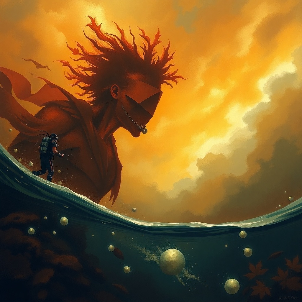 Dark ambient progressive metal, jazz-fusion, psychedelic, Bass-infused, layered instruments, complex structure, Baritone male vocals