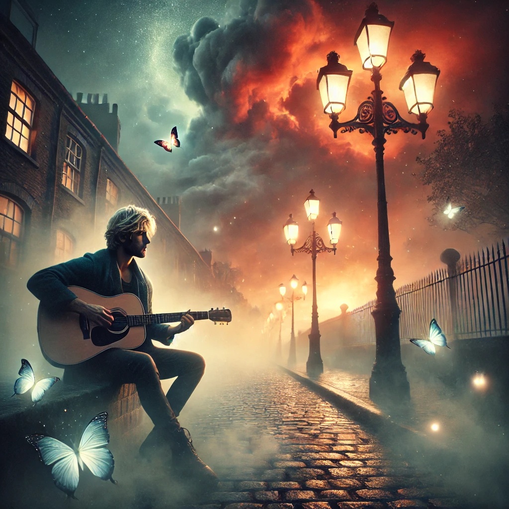 Slow, mournful Americana and dark country merge as raw, weathered male vocals sit atop fingerpicked acoustic guitar and subtle slide, Sparse upright bass and brushed snare create space, while clean vocals deliver emotion, Occasional pedal steel adds haunting depth, keeping the ballad intimate and stark