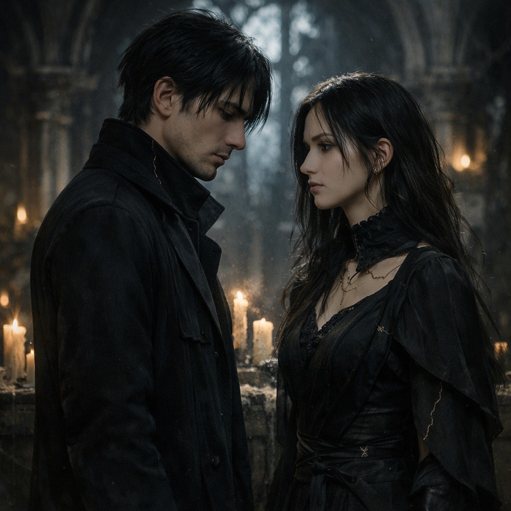 A dark cinematic fusion of classical music and cyberwave in D minor at 120 BPM, Dark analog pads, pulsing bass, restrained arpeggios, and low drones shape the verses, where the male vocal stays intimate and shadowed, In the pre-chorus, strings rise and open the emotional tension, The chorus shifts leadership to the orchestra: sweeping strings, deep brass weight, and cinematic percussion drive the song while cyberwave synths remain atmospheric and spatial, The solo features strings carrying the main melody, answered by trombones and French horns with a dramatic counter-melody, The final chorus expands with fuller harmonies and subtle choir depth, The overall sound should feel haunting, elegant, modern, and emotionally possessed, with cyberwave supporting a dark orchestral core rather than overpowering it