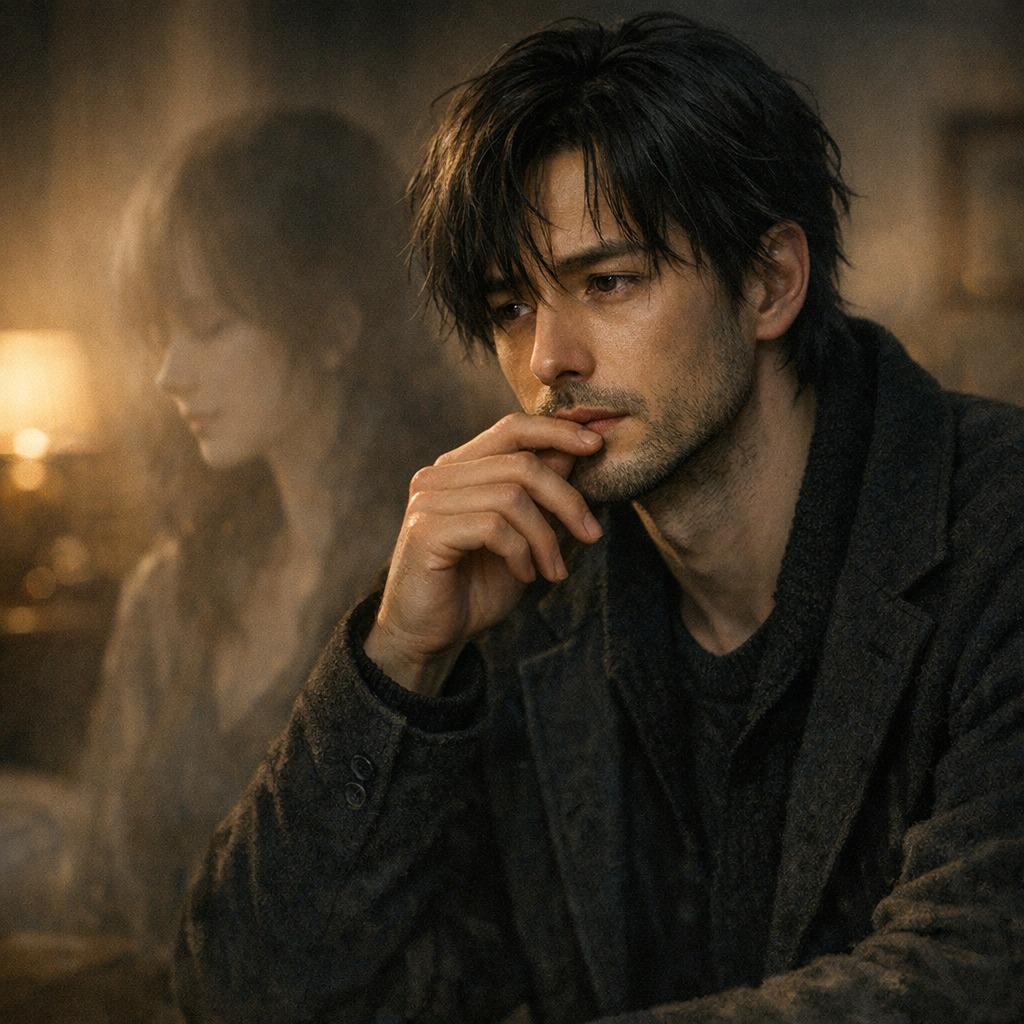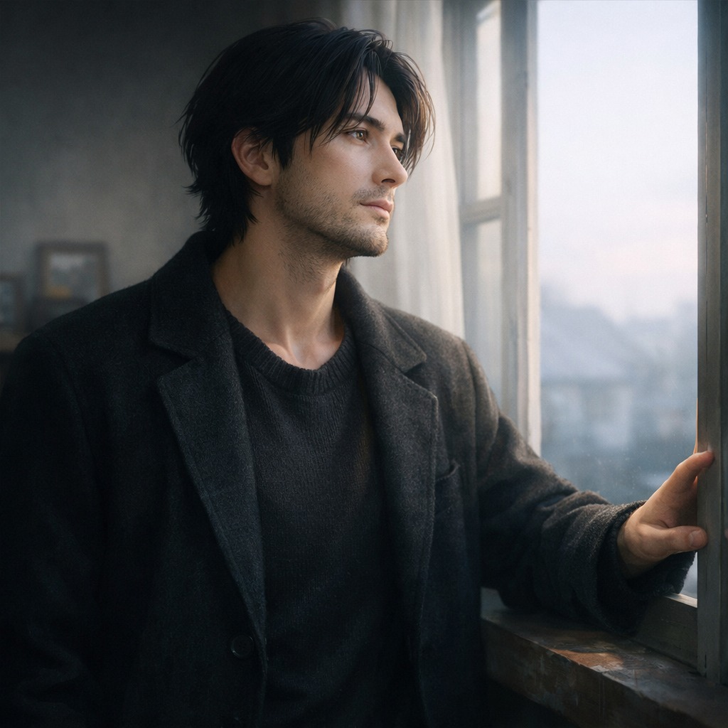 A hopeful fusion of classical music, cyberwave, electro-gothic, and cinematic dark pop at 105 BPM, Warm dark synth pads, soft pulsing bass, and restrained arpeggios create a reflective foundation, while strings carry the main melody with nostalgic cinematic weight, Brass, especially French horns and trombones, adds broad emotional contrast and gentle dramatic lift rather than menace, The male vocal stays intimate and grounded, moving through memory, grief, and release with calm strength, The solo expands fully, with strings driving the main melody and brass answering in a dynamic counter-line, The overall sound should feel reflective, open, and healing, with sadness still present but no longer dominant, It should be uplifting in a quiet, earned way, never glossy or euphoric