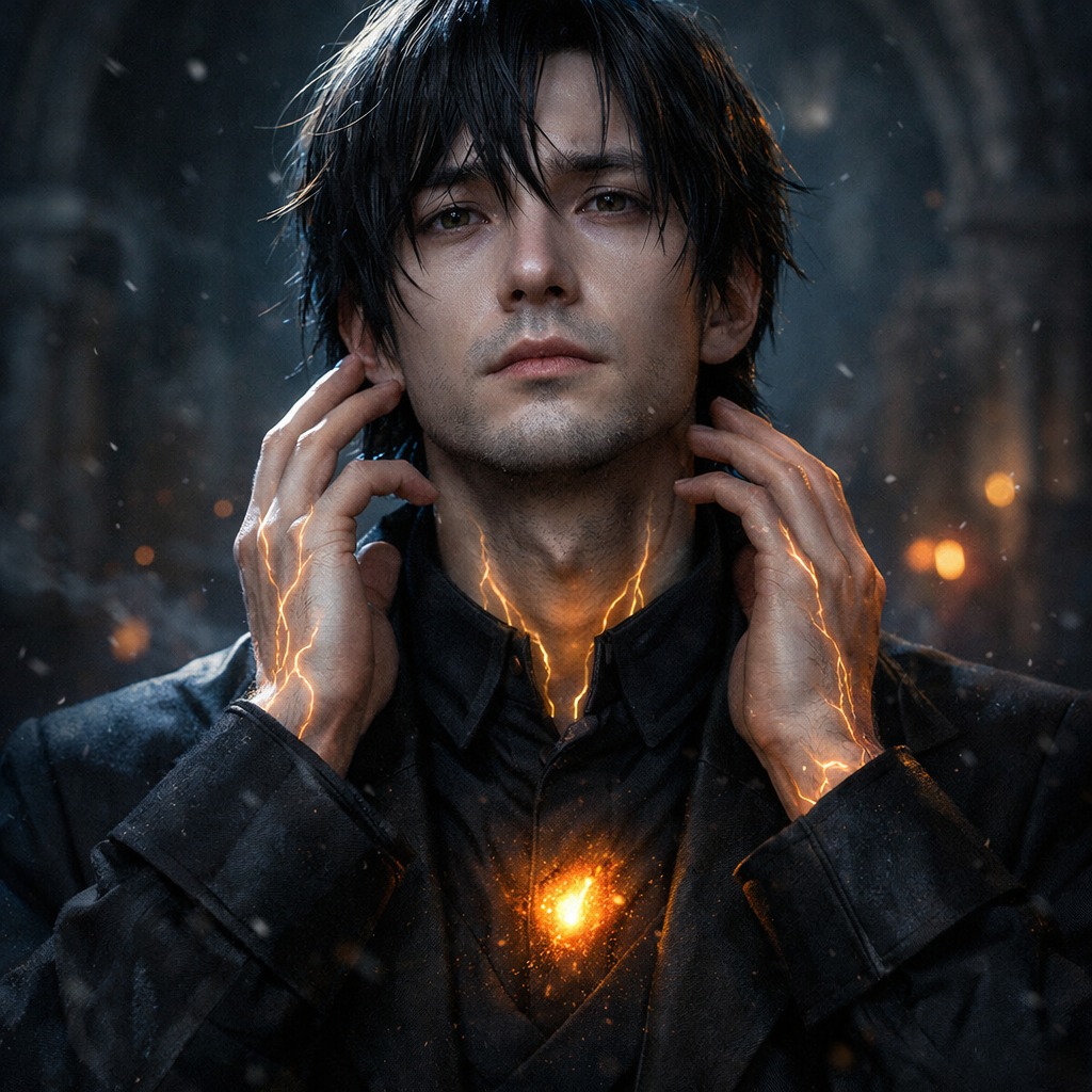 A fusion of classical music and cyberwave in D minor, built around dark analog synth pulse, low drones, restrained arpeggios, and cinematic strings, The verses are led by a lightly mystical spoken male voice, with cyberwave elements in the foreground and orchestral color kept subtle and shadow-like, In the pre-chorus, strings rise and open the emotional space, In the chorus, classical music takes the lead with sweeping strings, deep orchestral weight, and powerful melodic lift, while synths remain immersive and spatial rather than dominant, The bridge narrows into intimate tension before expanding again, The final chorus adds vocal harmonies and fuller orchestral presence, The overall sound should feel haunting, elegant, cinematic, and emotionally intense, with modern synth atmosphere supporting a timeless classical core
