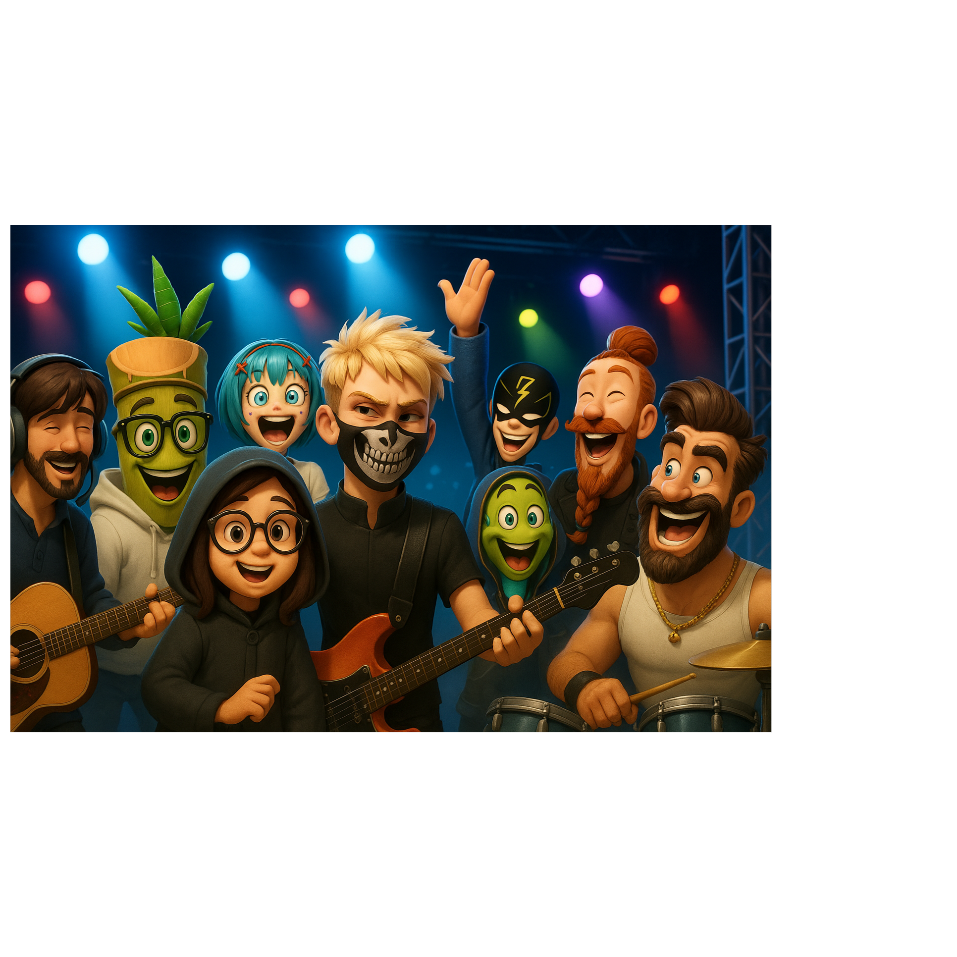 A high-energy, funky hip-hop track in E minor with a playful party vibe, blending tight boom-bap drums with crisp funk guitar chops, warm slap bass grooves, and bright brass stabs, tempo around 96 BPM, layered with crowd chants and call-and-response hooks to boost live energy, sprinkled with sci-fi synth textures to highlight the invented Razhka language, inspired by 90s hip-hop party anthems mixed with modern funk-hop crossover, perfect for dancing, cyphers, and interactive live shows, โfemale voice