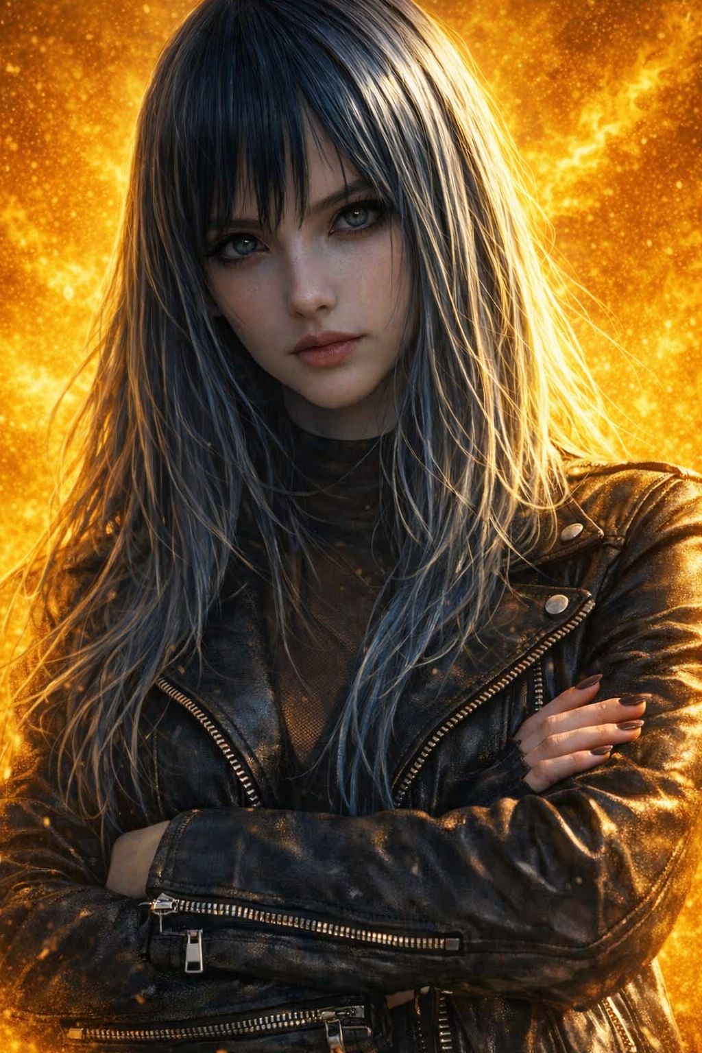 Industrial rock, Altanative Punk, sense of speed Thrash metal crossover, The performance becomes intense as soon as the intro begins, Aggressive, well-balanced mix, tight bass, Electronic, Driving Drums, Cool Emotional Female Vocals, High-tempo, Fast-paced, dark mysterious, and exhilarating feeling, Cynical, tight rhythm section, distorted guitars, controlled chaos, raw emotional production, Catchy, hooky, warm, analog, ‑mechanical, ‑8bit, ‑Noise, ‑VOCALOID, ‑pop, ‑harsh, ‑treble, ‑bright