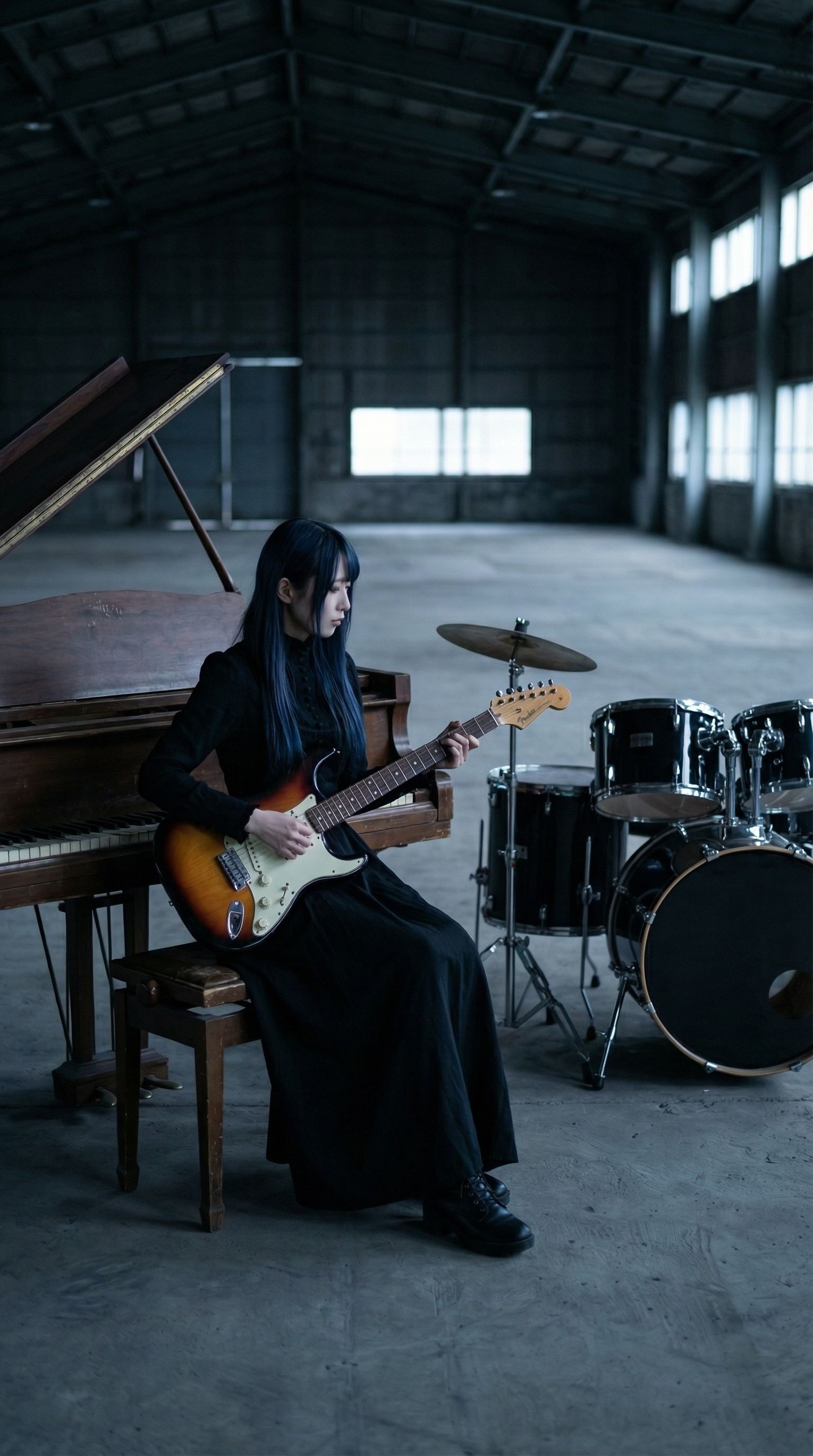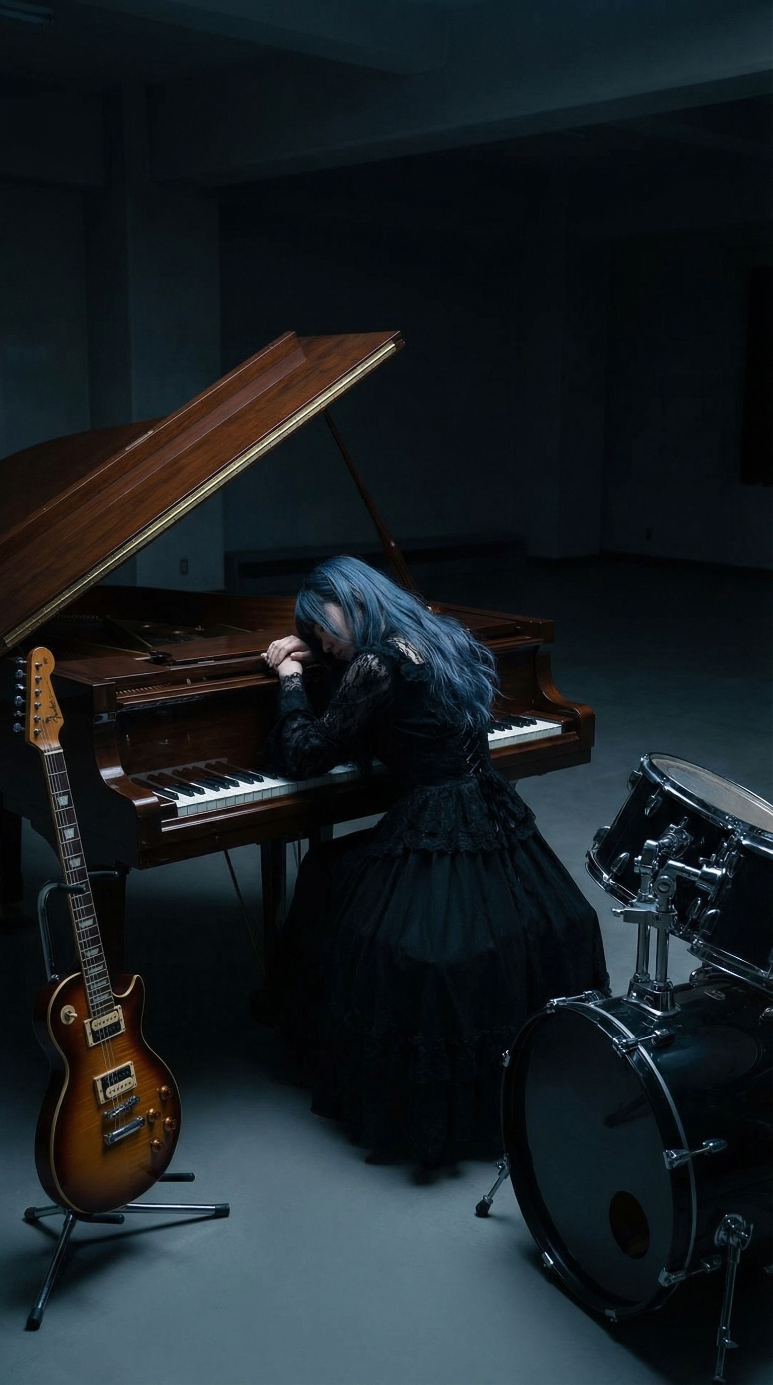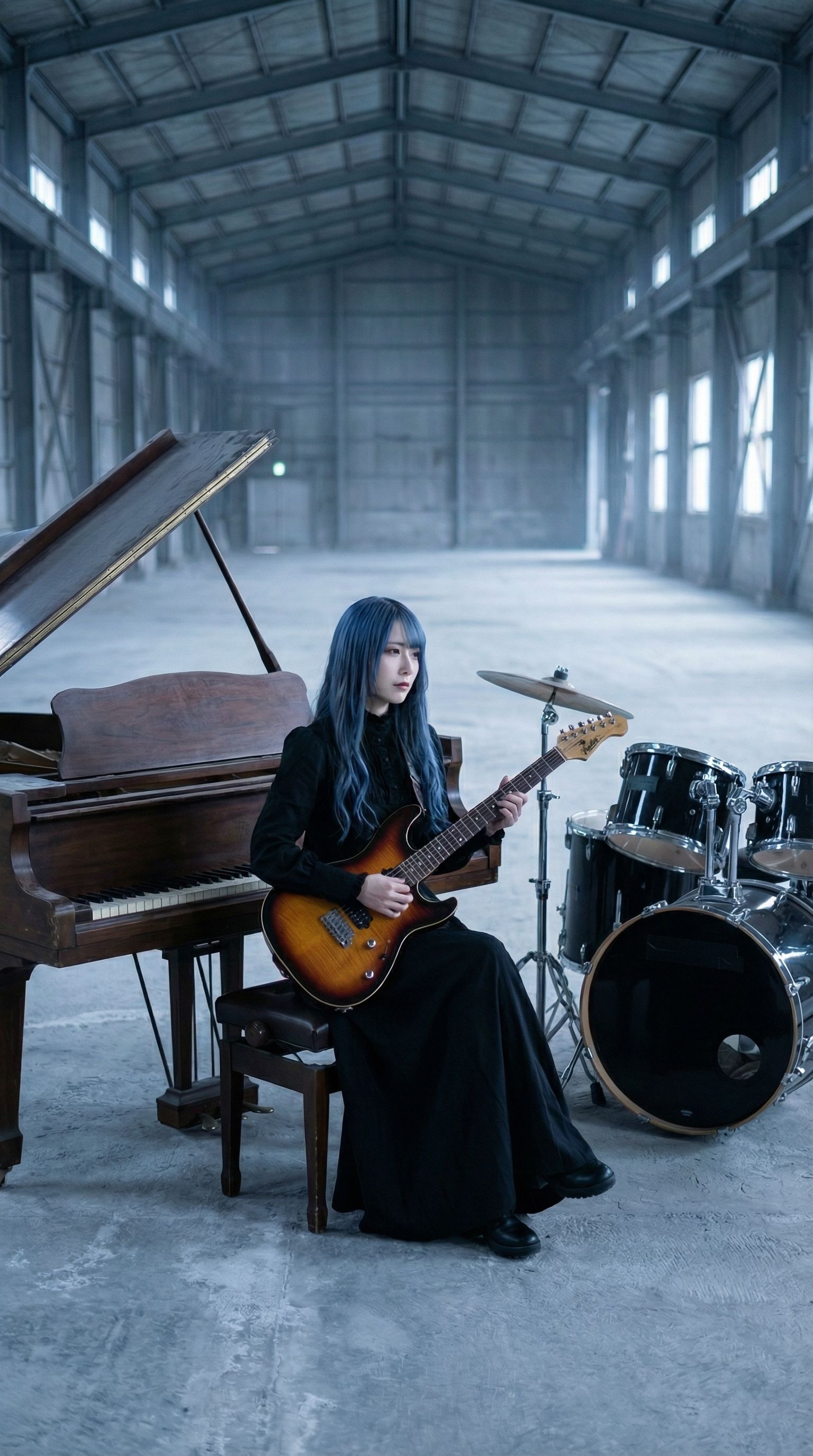 Wide Stereo Field, Hard Panned Rhythm Guitars, Layered Guitars, Stadium Rock, Echoey, Double-tracked guitars, warm, analog, Tight Bass, Punchy, Detailed, Short Decay, Compressed, Percussive, powerful bass, PIANO, ‑mechanical, ‑distortion, ‑8bit, ‑Noise, ‑VOCALOID, ‑harsh, ‑treble, ‑bright