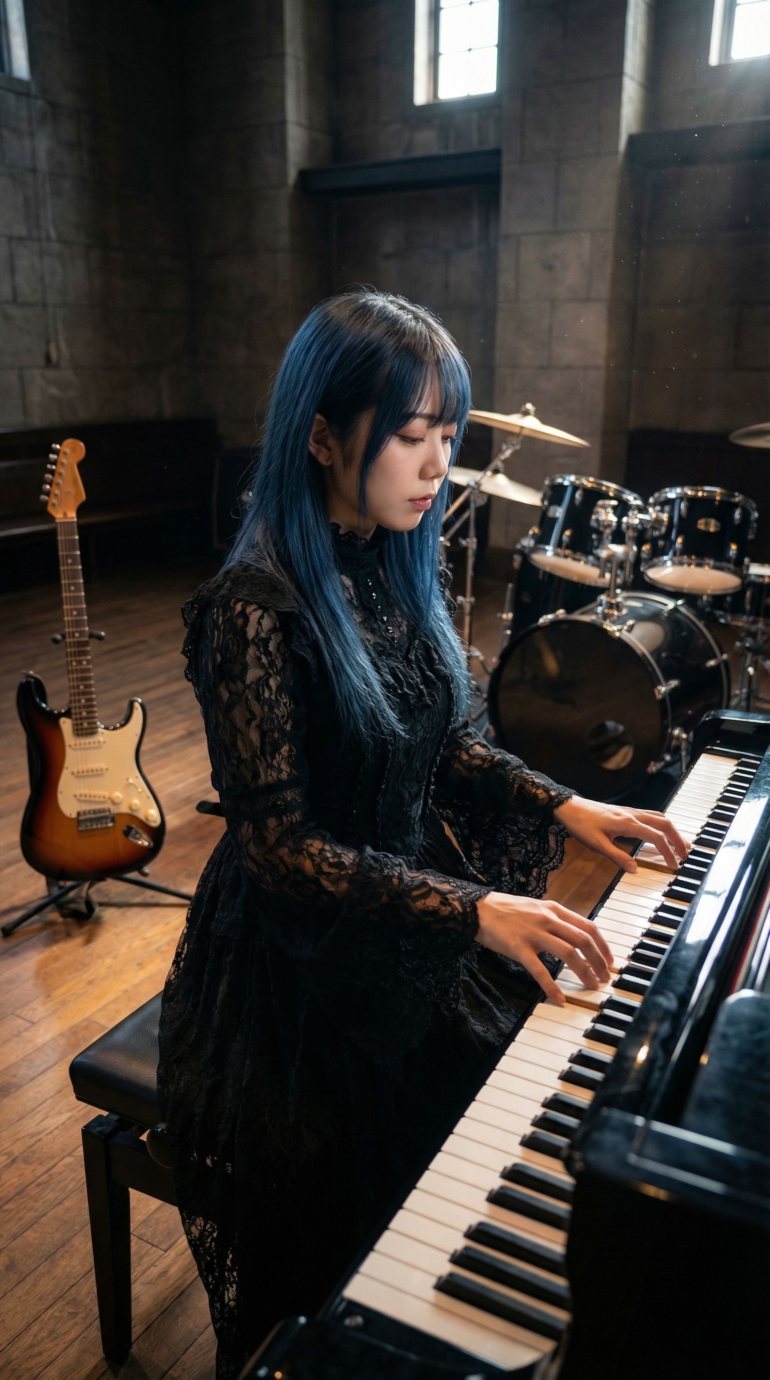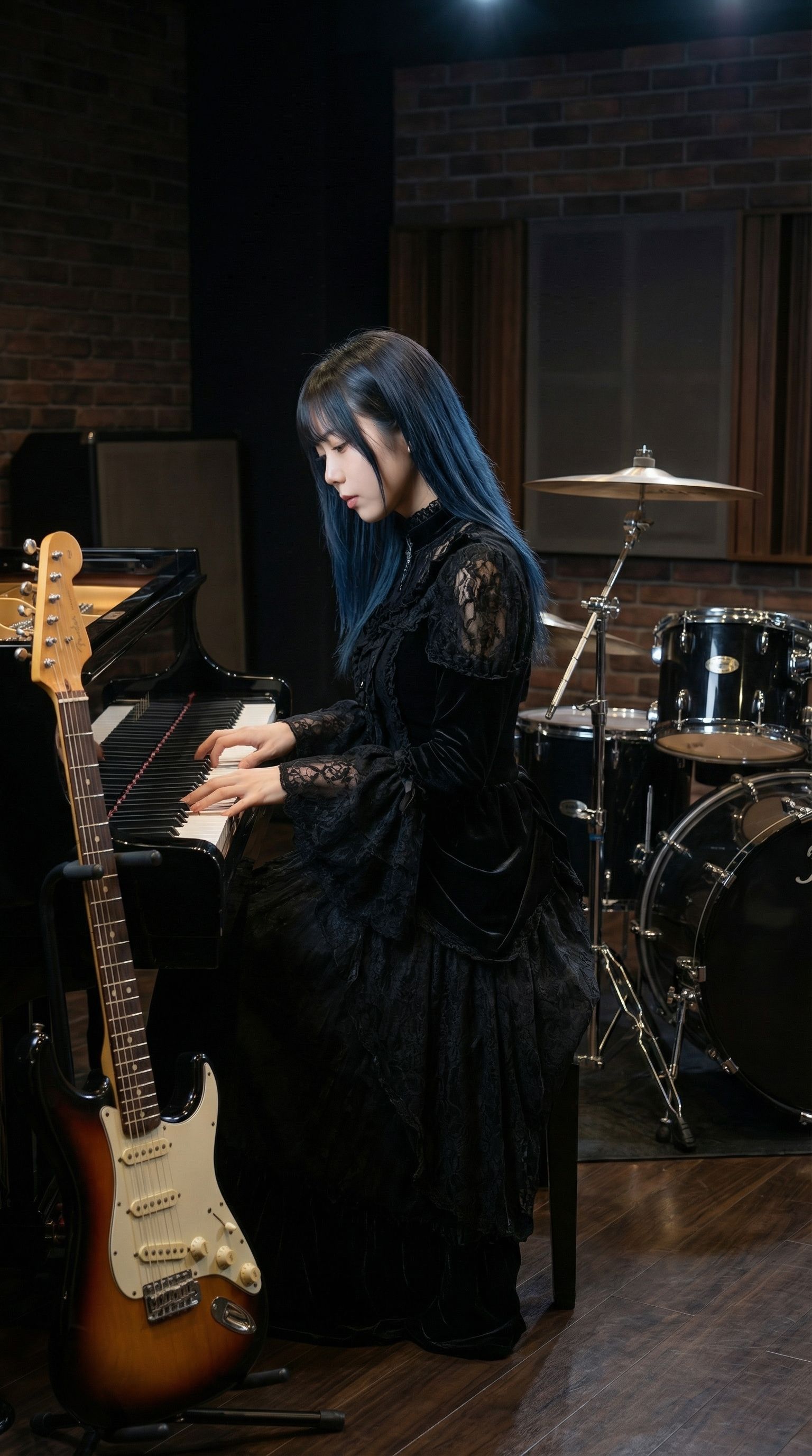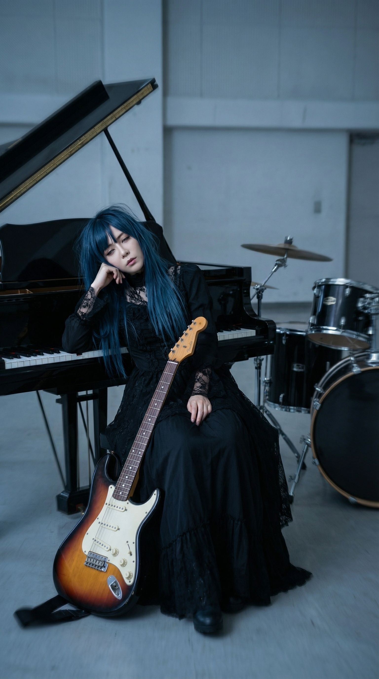 Wide Stereo Field, Hard Panned Rhythm Guitars, Layered Guitars, Stadium Rock, Echoey, Double-tracked guitars, warm, analog, Tight Bass, Punchy, Detailed, Short Decay, Compressed, Percussive, powerful bass, PIANO, ‑mechanical, ‑distortion, ‑8bit, ‑Noise, ‑VOCALOID, ‑harsh, ‑treble, ‑bright