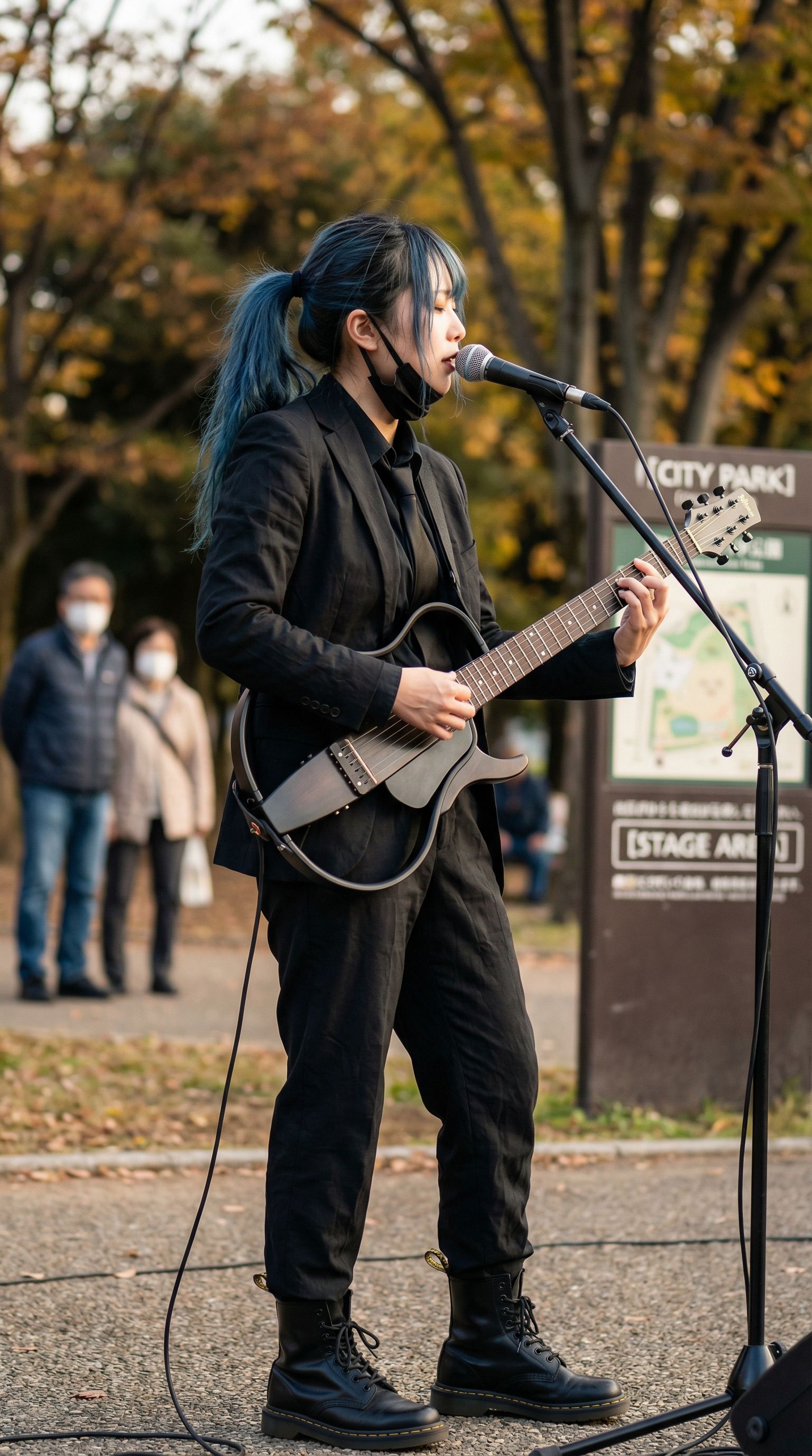 Industrial Punk Rock, High Energy, Metallic percussion, Gritty Distorted Guitars, Upbeat, Cool emotional Female vocals, 160 BPM, Driving rhythm, Electronic elements, tight bass, powerful bass, ‑VOCALOID, ‑Pop, ‑distortion, ‑harsh, ‑treble, ‑bright, ‑NOISE, ‑8bit