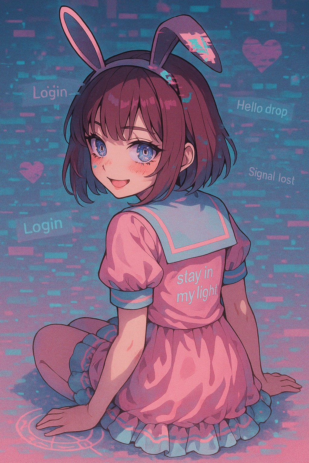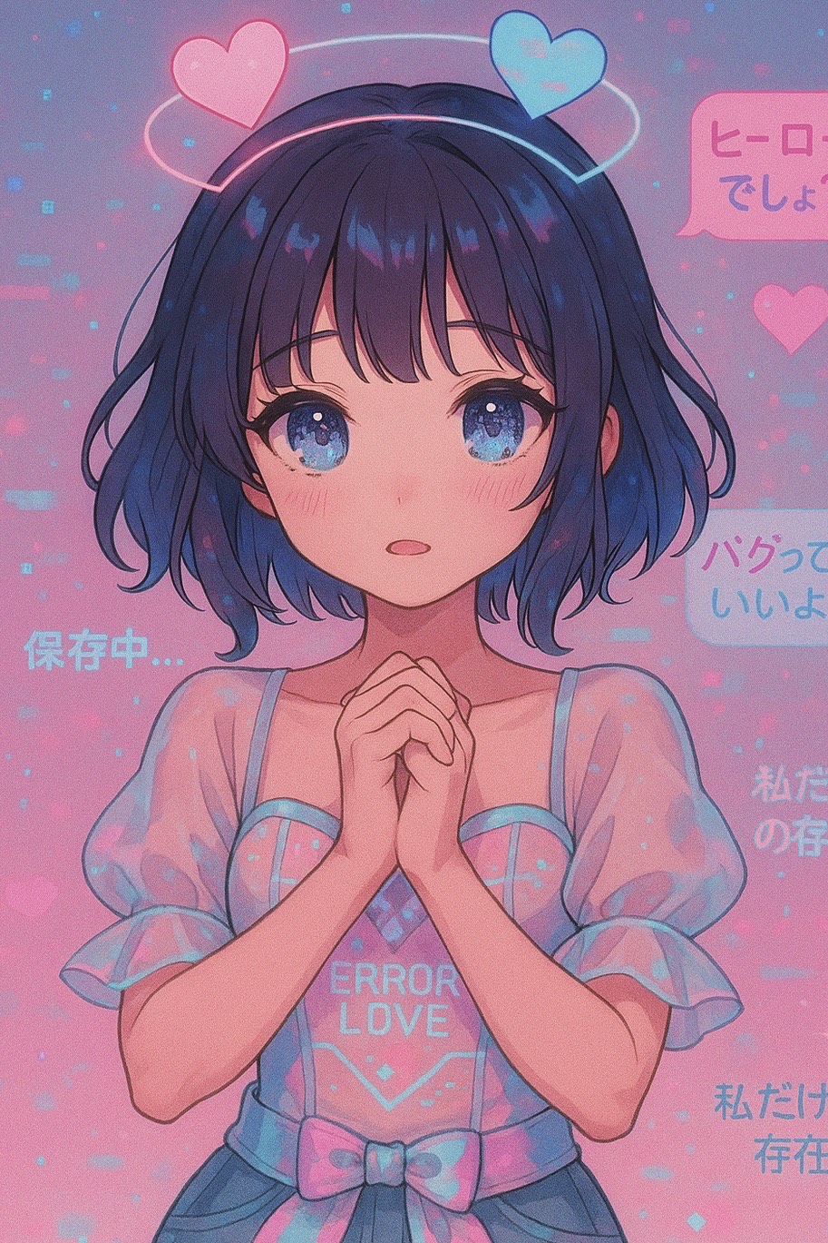 An uptempo, hyper-cute, and psychotic J-Pop fantasy track designed like a digital love attack from a glitchy magical girl who knows sheโs the main character, Carousel-style melodies spin out of control with aggressive chiptune arpeggios, twinkling bells, and toybox synths pushed into glitch overload, The beat slams with distorted kicks, metallic claps, and overcompressed snaresโlike pounding fists against the glass of the screen, Vocals are high-pitched, heart-eyed, and absolutely unhinged: giggling, chanting, demanding attention with breathless, rapid lines and layered shouts, Every sound is soaked in glitch FX, tape stops, and stutter loops, This isnโt just a songโitโs a corrupted confession of love, a pixelated meltdown wrapped in candy-coated violence, The mood is violently cute and dangerously euphoric, like a digital yandere angel trapped in an endless love-loop, Perfect for exploring themes of possessive affection, glitchy devotion, and screen-bound obsession