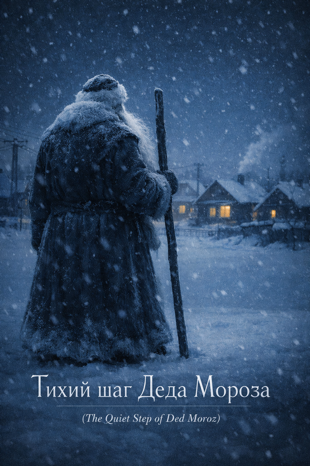 Russian folk, slow to mid‑tempo (70–85 BPM), minor key, acoustic arrangement, Balalaika, acoustic guitar, soft bayan/accordion pad, subtle strings, light sleigh bells, brushed percussion, deep warm bass, Male lead vocal, low to mid register, emotional and calm, traditional Russian folk style, occasional backing choir on choruses, Winter, nostalgic, magical, peaceful, slightly melancholic mood, Clean mix, natural reverb, intimate village atmosphere, no modern pop drums, no distortion