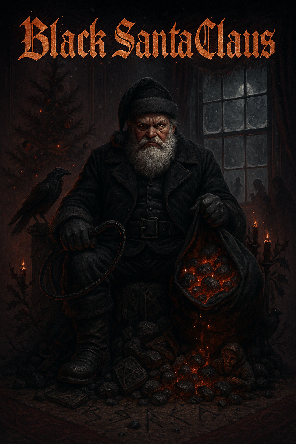 Gothic metal Christmas style, dark and cinematic atmosphere, heavy electric guitars, thunderous drums, symphonic strings, gothic choirs, deep male vocals with clean and growl mix, haunting church bells, dramatic orchestral build, slow to mid tempo, intense and theatrical
